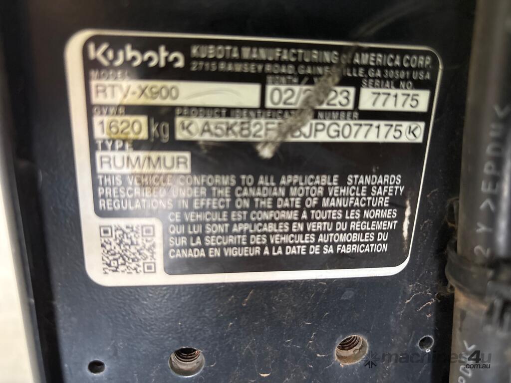 CP: 02/2023,Kubota,RTV X900,ATV 4WD,Engine #: 4NY0925,3 Cyl,Diesel,13712 (Kms. Showing on Odometer),Hourmeter not visible,Colour: Orange,Unregistered QLD,VIN: A5KB2FDBJPG077175,Chassis: A5KB2FDBJPG077175,Serial No: 77175,Sold with No Plates,Key No: M10