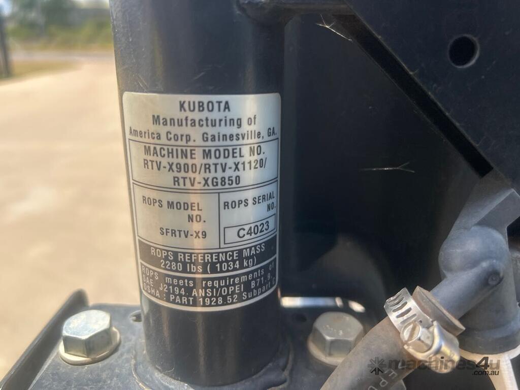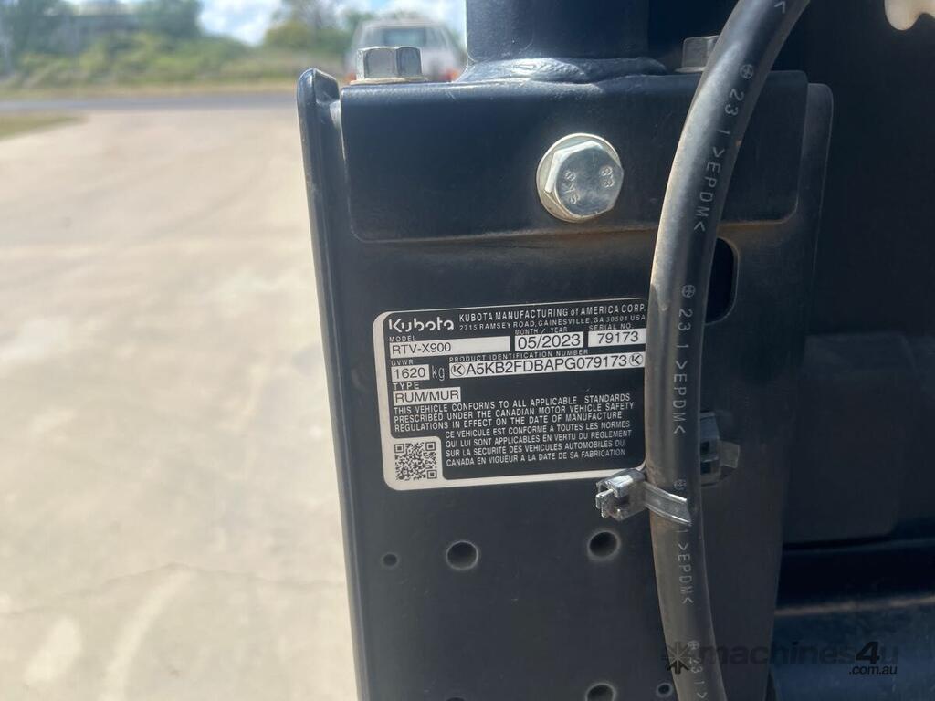 CP: 05/2023,Kubota,RTV X900,ATV 4WD,3 Cyl,Diesel,14883 (Kms. Showing on Odometer),Hourmeter not visible,Colour: Orange,Unregistered QLD,VIN: A5KB2FDBAPG079173,Chassis: A5KB2FDBAPG079173,Serial No: 79173,Sold with No Plates,Key No: M9