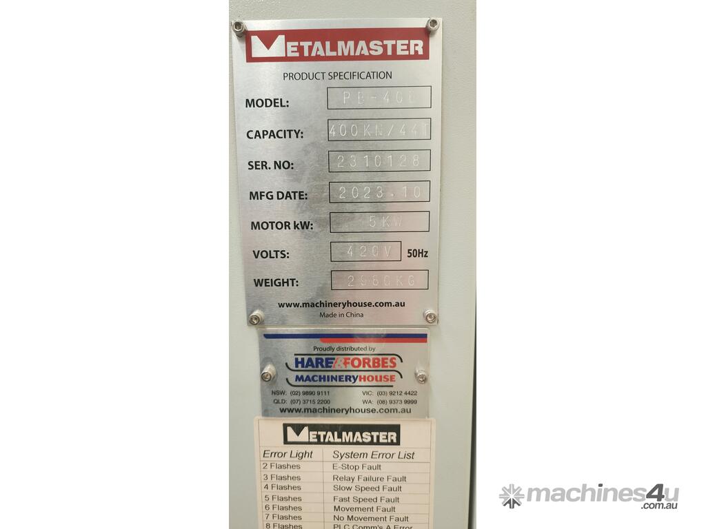 For sale one 44T Metalmaster PB-40B Press Brake. Very low use.