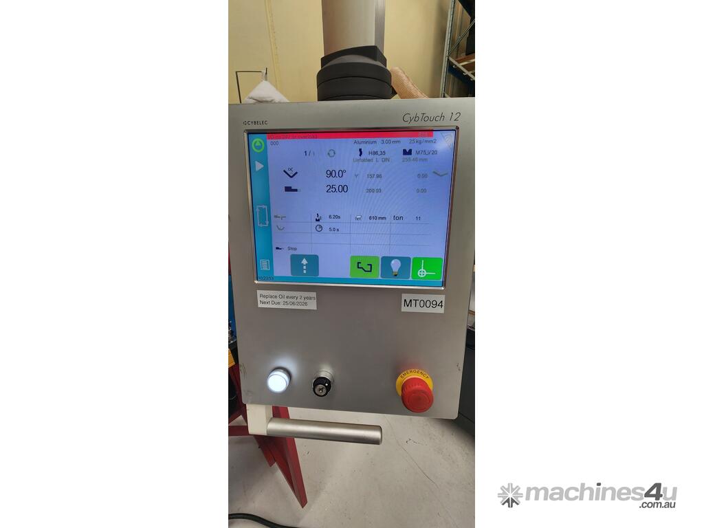 Cybelec CT12 CNC Controller: intuitive touchscreen interface for fast program setup, tool management, material selection, and bend sequencing.