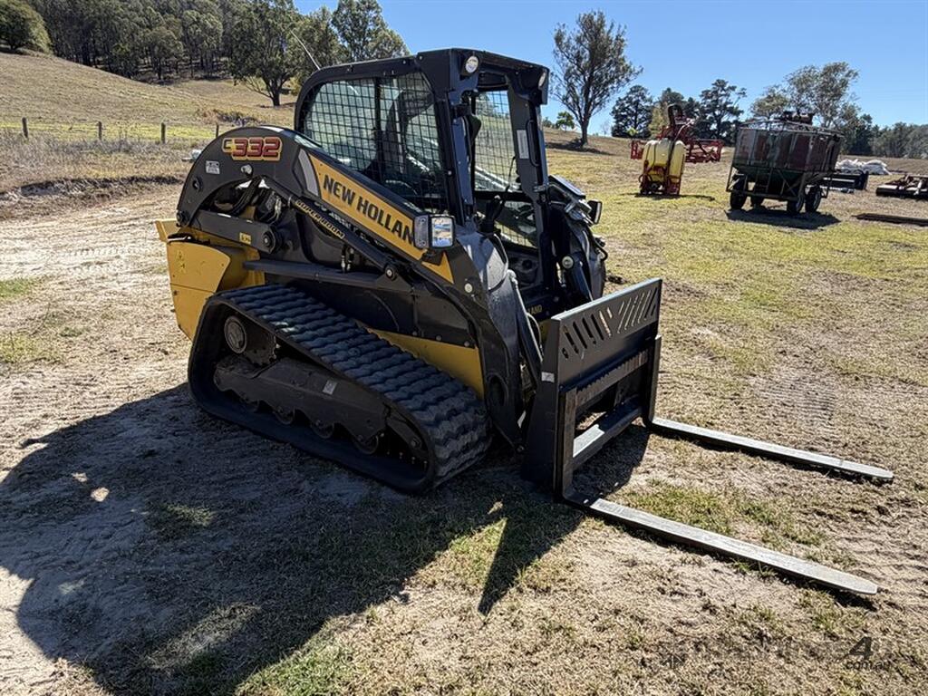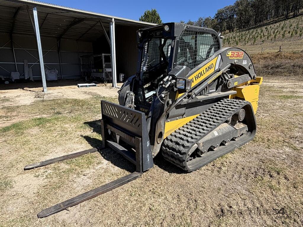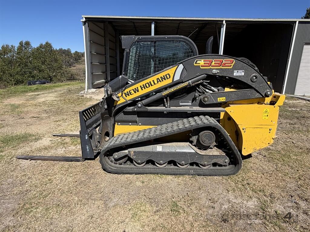 USED 2023 NEW HOLLAND C332 SKID STEER, S/N: JAF0C332CNM419571, tracks, 490 hrs, comes with 2m 4in1 bucket and pallet fork attachment, in good working order, located Glen Innes