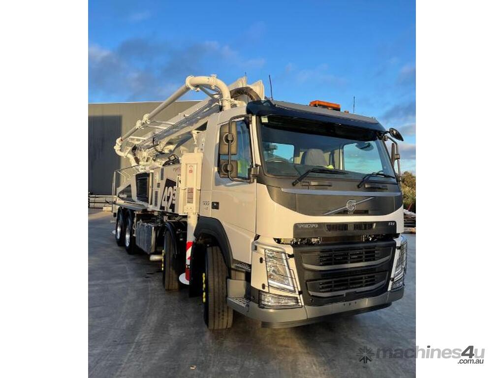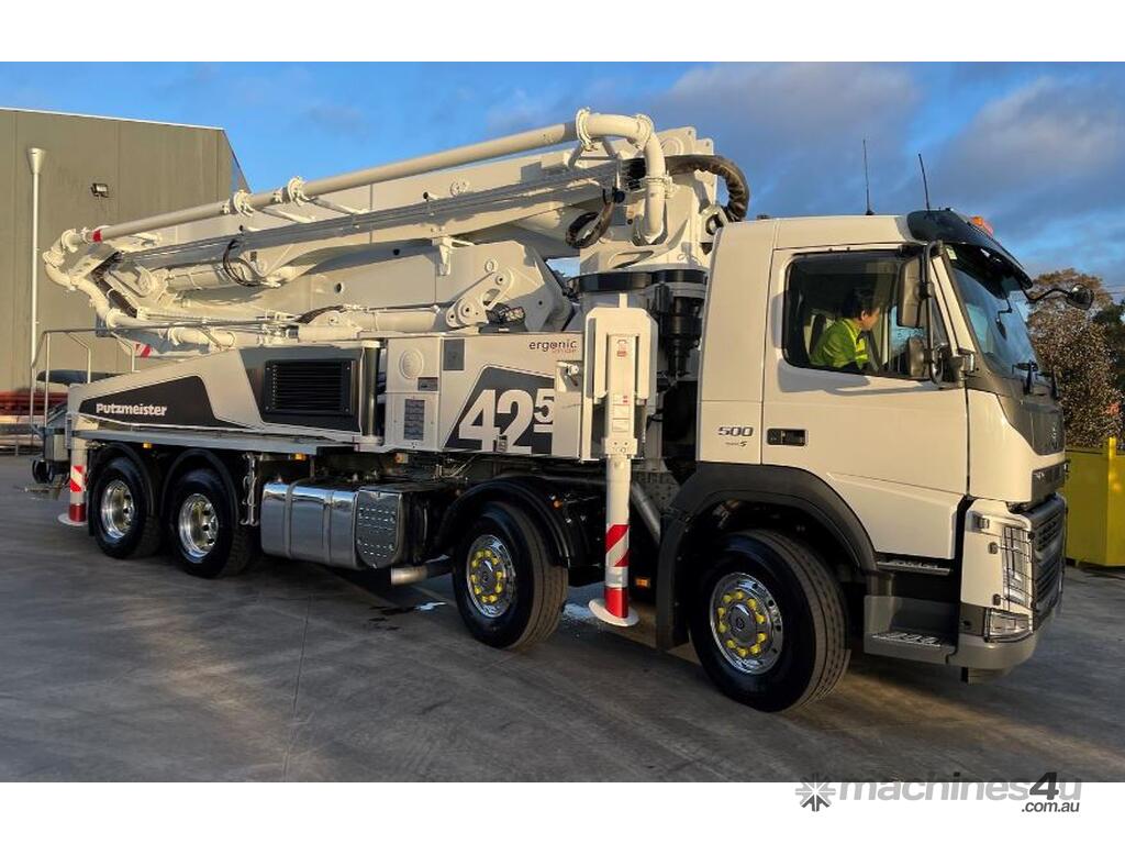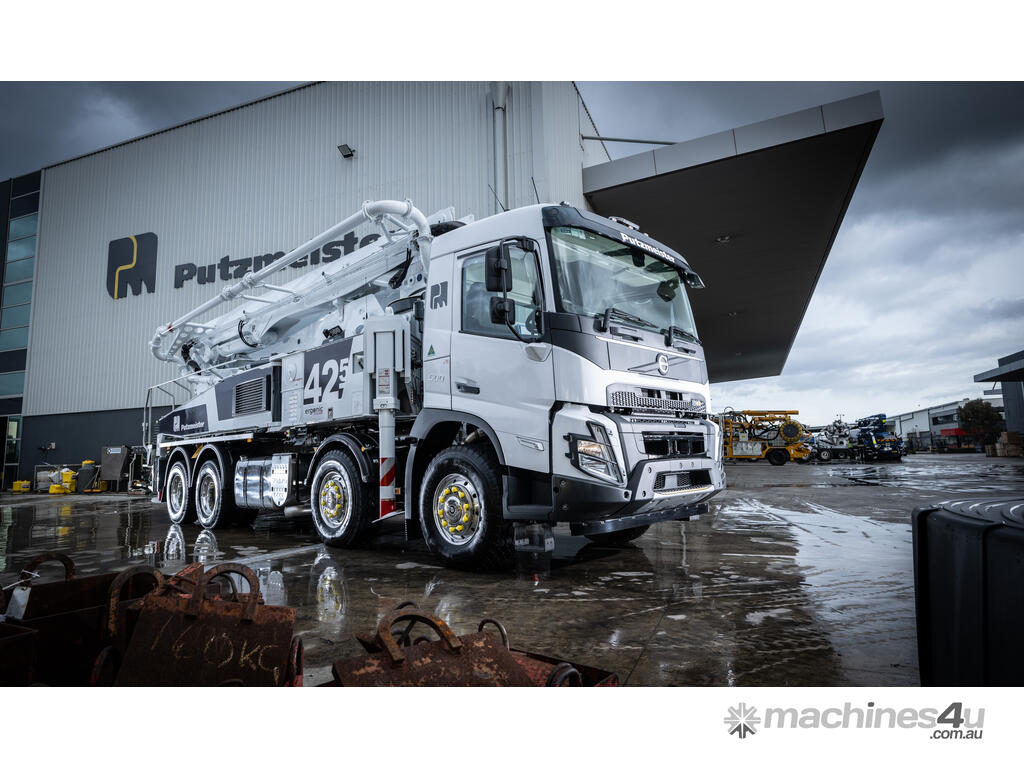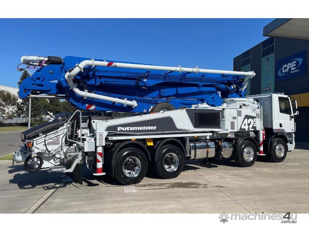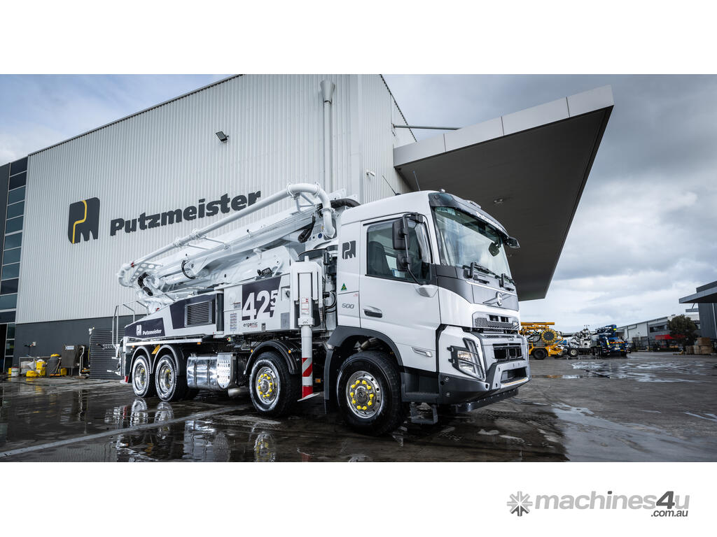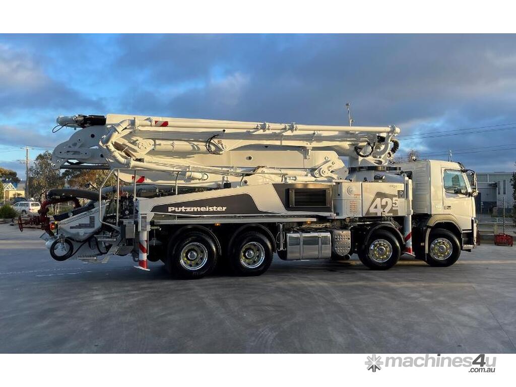 Boom is a 42metre, 5 stage, Roll Z configuration, 125mm (5inch) PutzmeisterTwin wall pipeline, fitted with End hose Squeezer, Putzmeisters unique OSS - One Side Support. Smallest outrigger footprint in the market, 7.5m front to front outrigger, 7.9m rear outriggers, or OSS = 4.8m on front and 6.2m on rear.