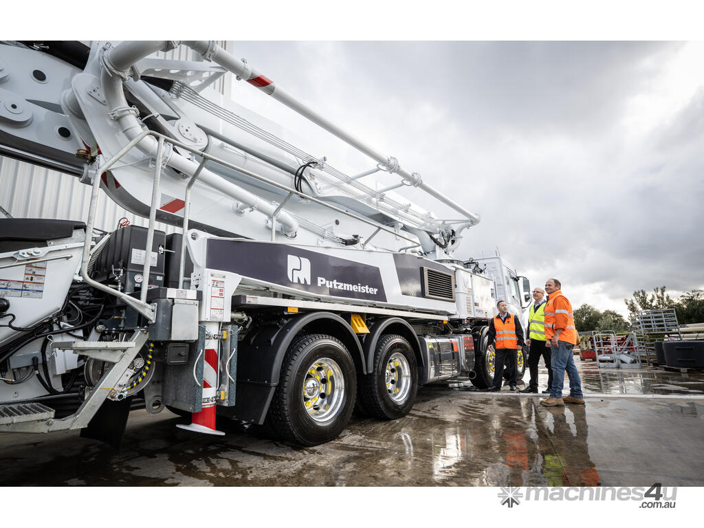 Also included is LED side markers, Flashing beacon on rear of boom, spotlight kit for work zone, high pressure concrete pistons, hardmetal wear parts, additional safety handrails, vibrator, foldable splashguard on hopper, non skid working decks, foldable rear steps and additional timber supports, pressure washer and loads more