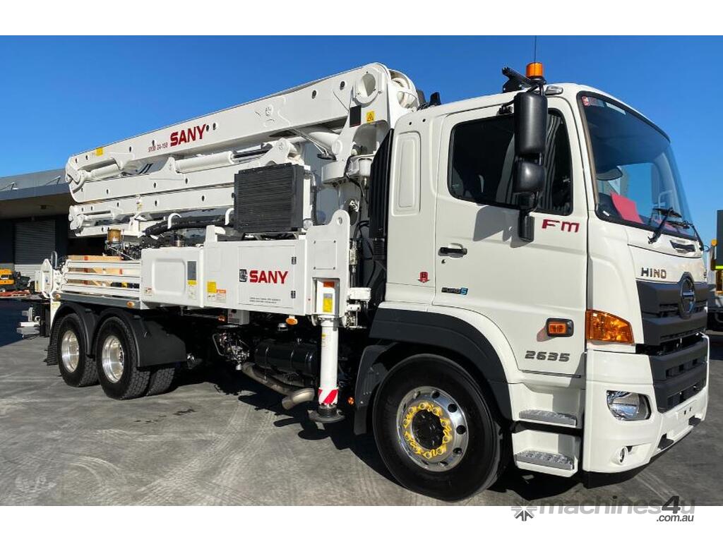 The Sany 30Z 4 is a very capable concrete pump, and with X style front outriggers and T style rear outriggers it is very suitable for the domestic market or those tighter access jobs. The Hino FM 500 series is a very capable truck, extremely reliable and well supported dealer ship.