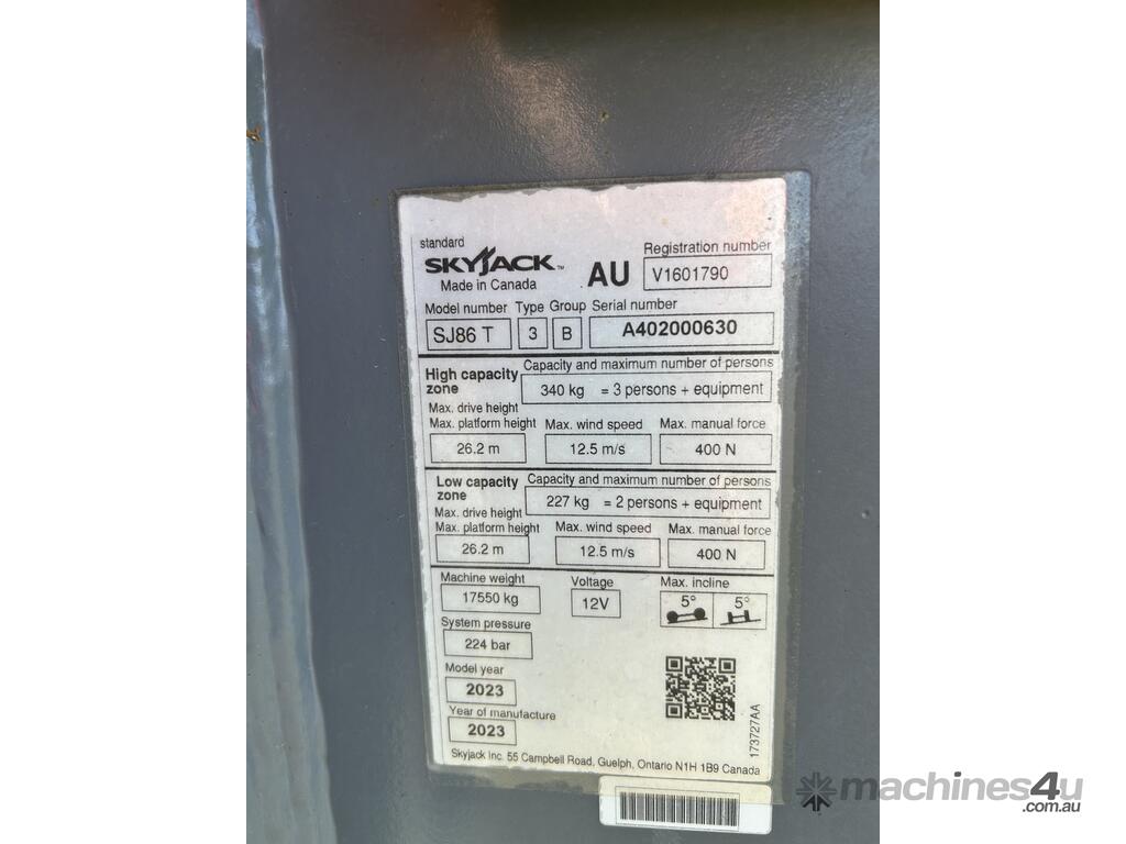 2023 Skyjack SJ86T Straight Boom, Large Basket :      $115,000 AUD($126,500 Inc. GST)