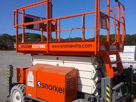 The Snorkel S3370RT is a compact rough terrain scissor lift offering excellent 4-wheel drive performance in a compact footprint.