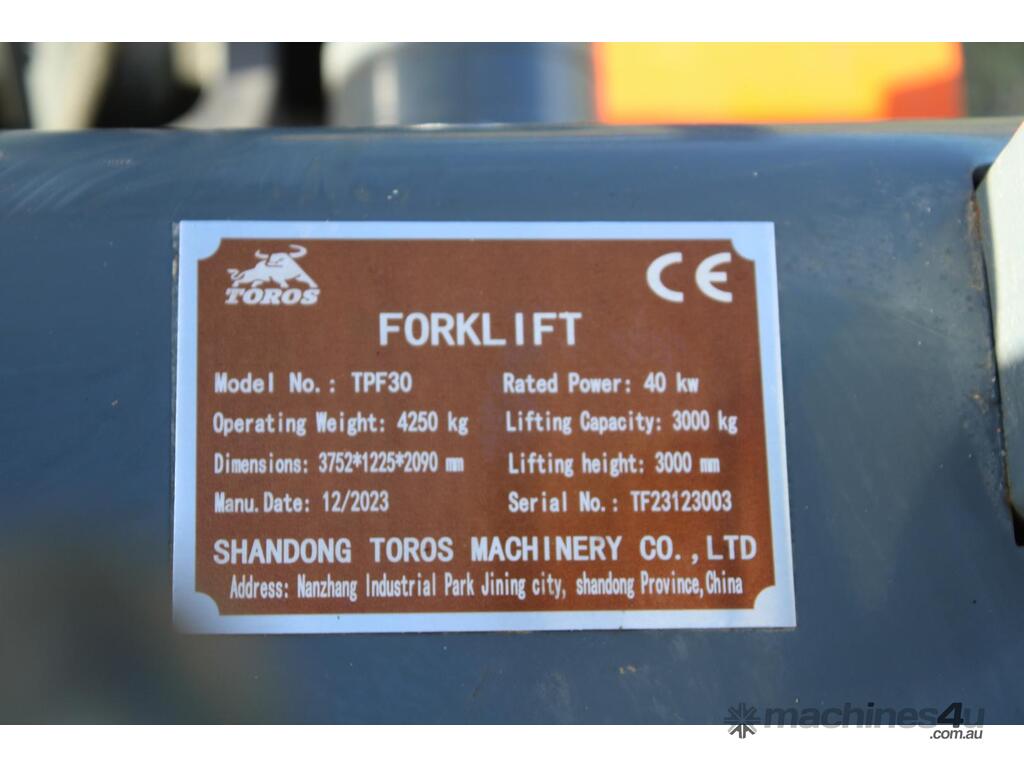 New Toros Counterbalance Forklifts for sale - 2023 TOROS TPF30 :      $22,500 AUD($24,750 Inc. GST)