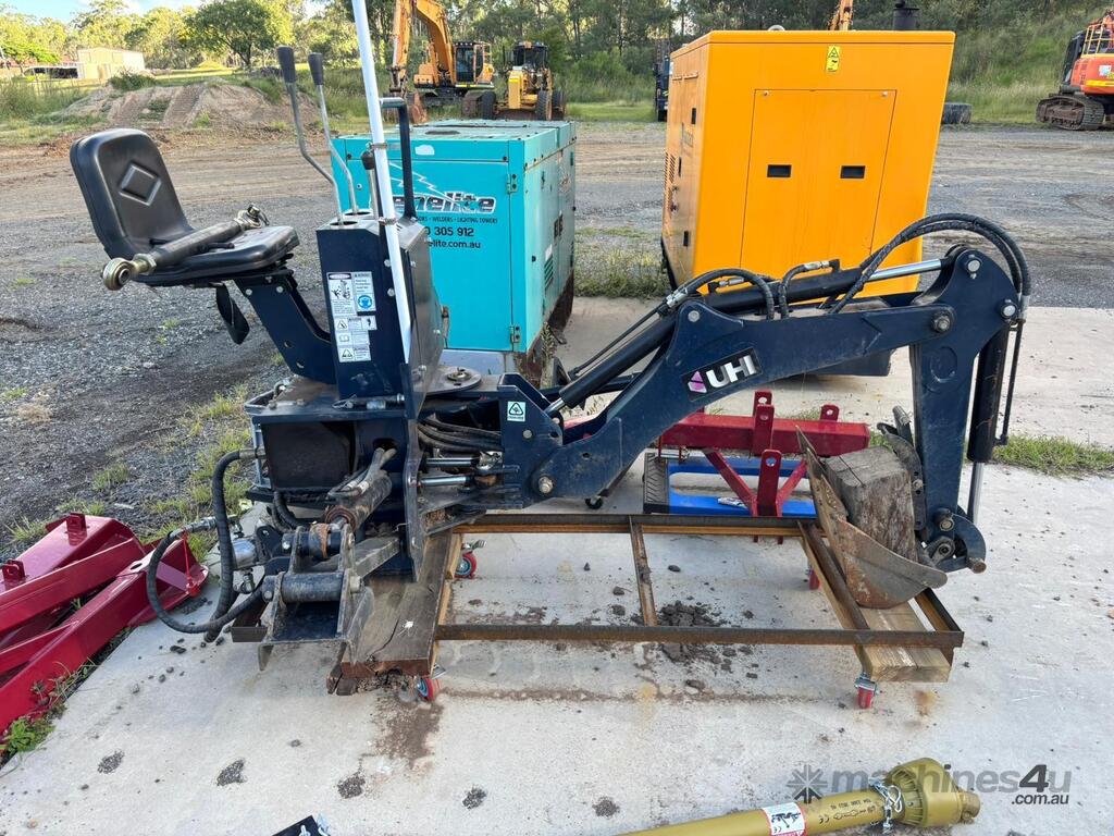 Front end loader, 4 in 1 Bucket, forks, hay spikes, Grader blade, post hole digger, backhoe w/ 2x buckets