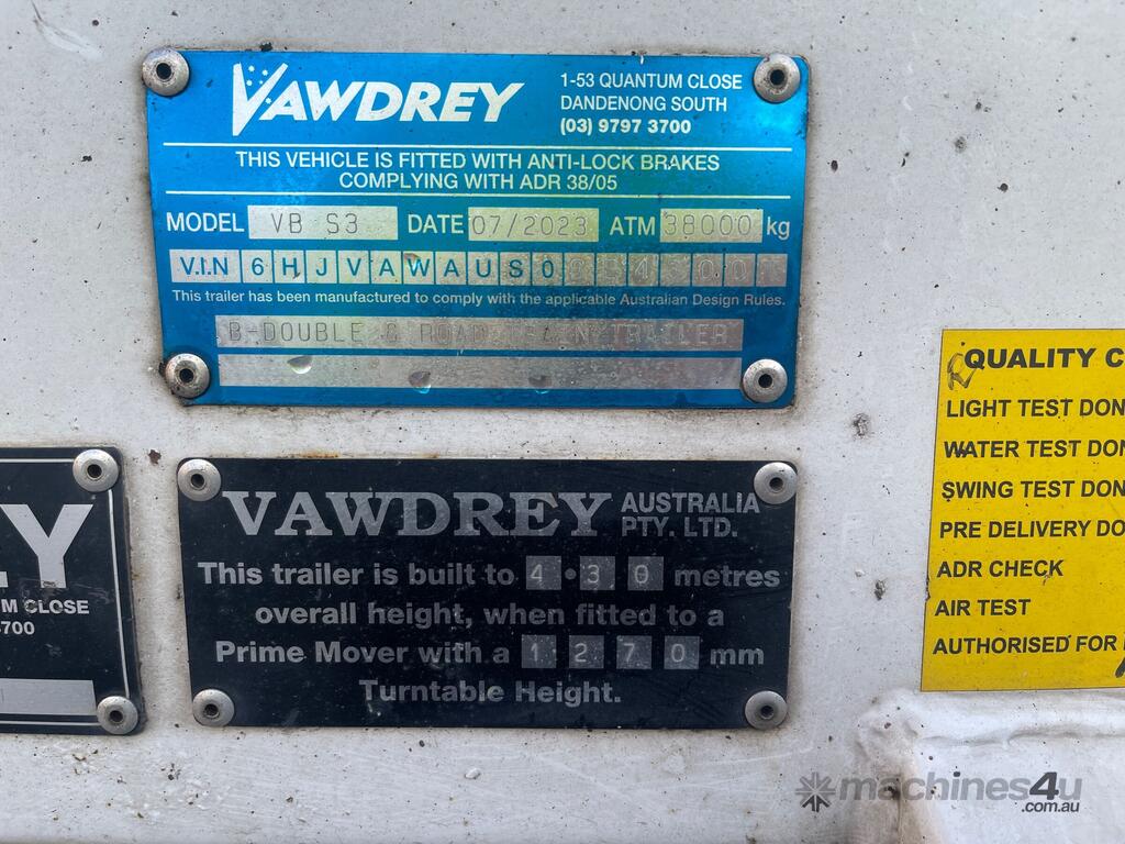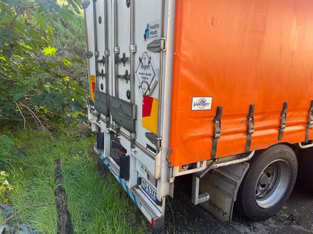 CP: 07/2023,Vawdrey,VB S3,Tri Axle Curtainside B Trailer,467168 (Kms. Showing on Hubometer),Colour: Orange,Rego. No: NP(YQ63XP), Unregistered NAT,VIN: 6HJVAWAUS0SE43001,Sold with No Plates,WOVR Status: Repairable Write-Off,Incident Type: Impact