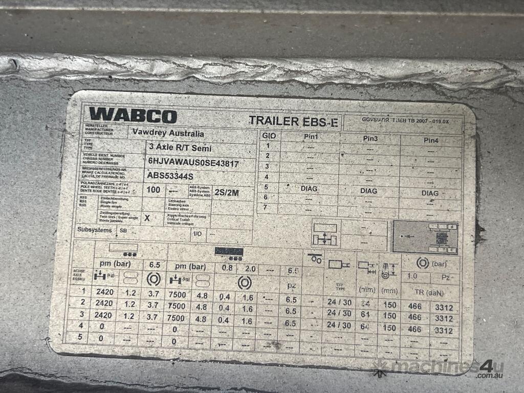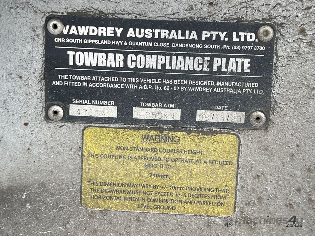 CP: 11/2023,Vawdrey,VB-S3,Tri Axle Drop Deck Curtainsider B Trailer,Hubometer not visible,Rego. No: NP(YB27AH), Unregistered,VIN: 6HJVAWAUS0SE43817,Sold with No Plates