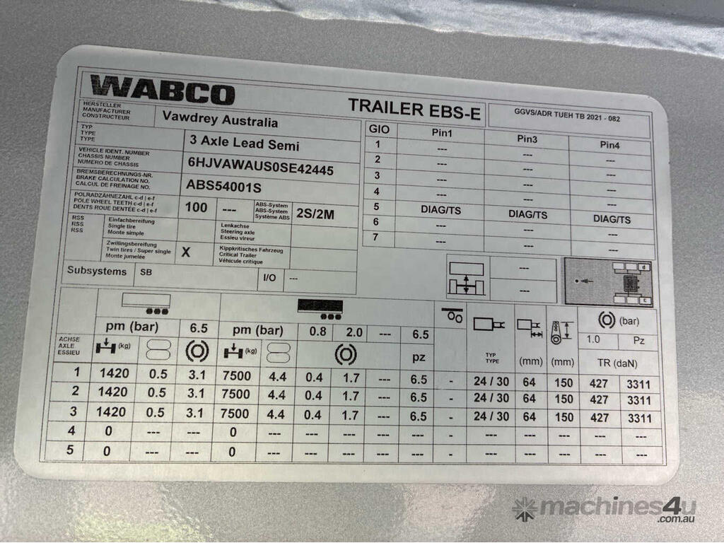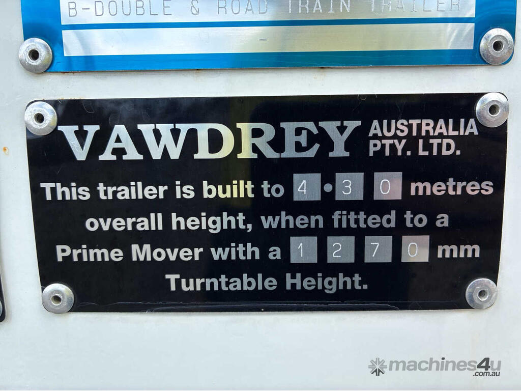 CP: 09/2023,Vawdrey,VB S3,Tri Axle Flat Top Curtainsider A Trailer,1948 (Kms. Showing on Hubometer),Colour: Silver,Unregistered,VIN: 6HJVAWAUS0SE42445,Sold with No Plates