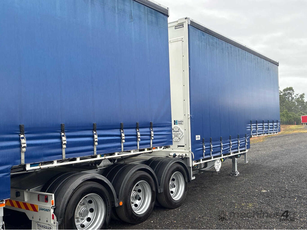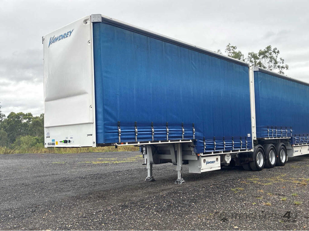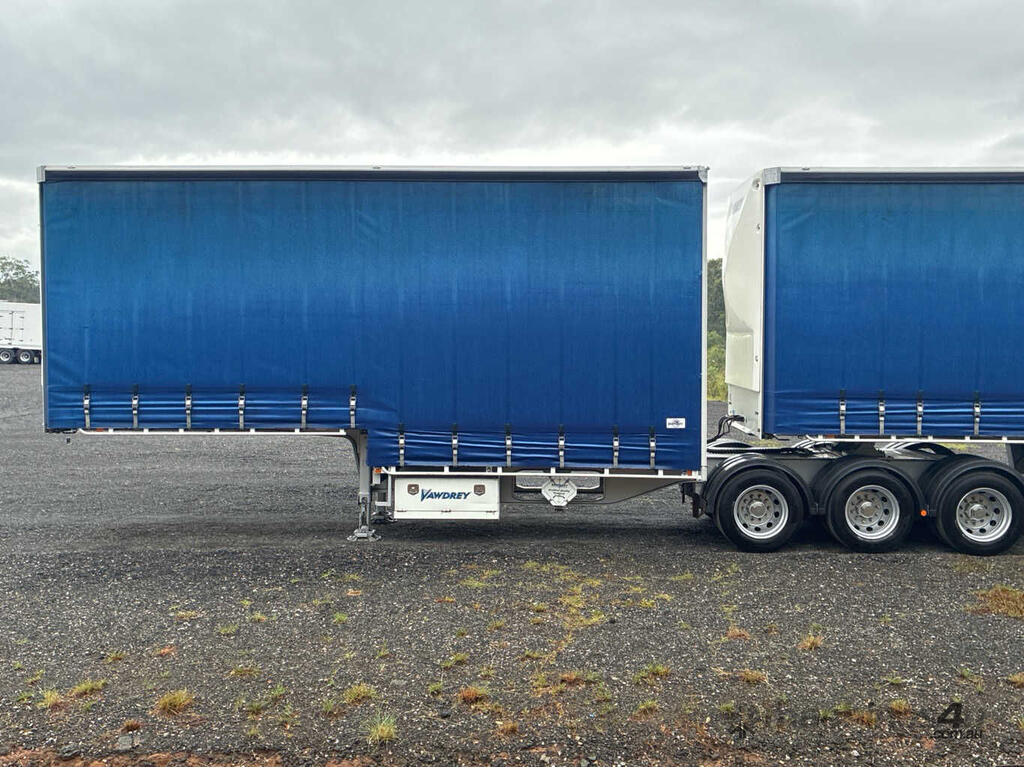 CP: 01/2023,Vawdrey,VBS3,Tri Axle Drop Deck Curtainsider A/B Combination,263206 (Kms. Showing on Hubometer),Colour: Blue,Unregistered,VIN: 6HJVAWAUS0SE41347,Sold with No Plates