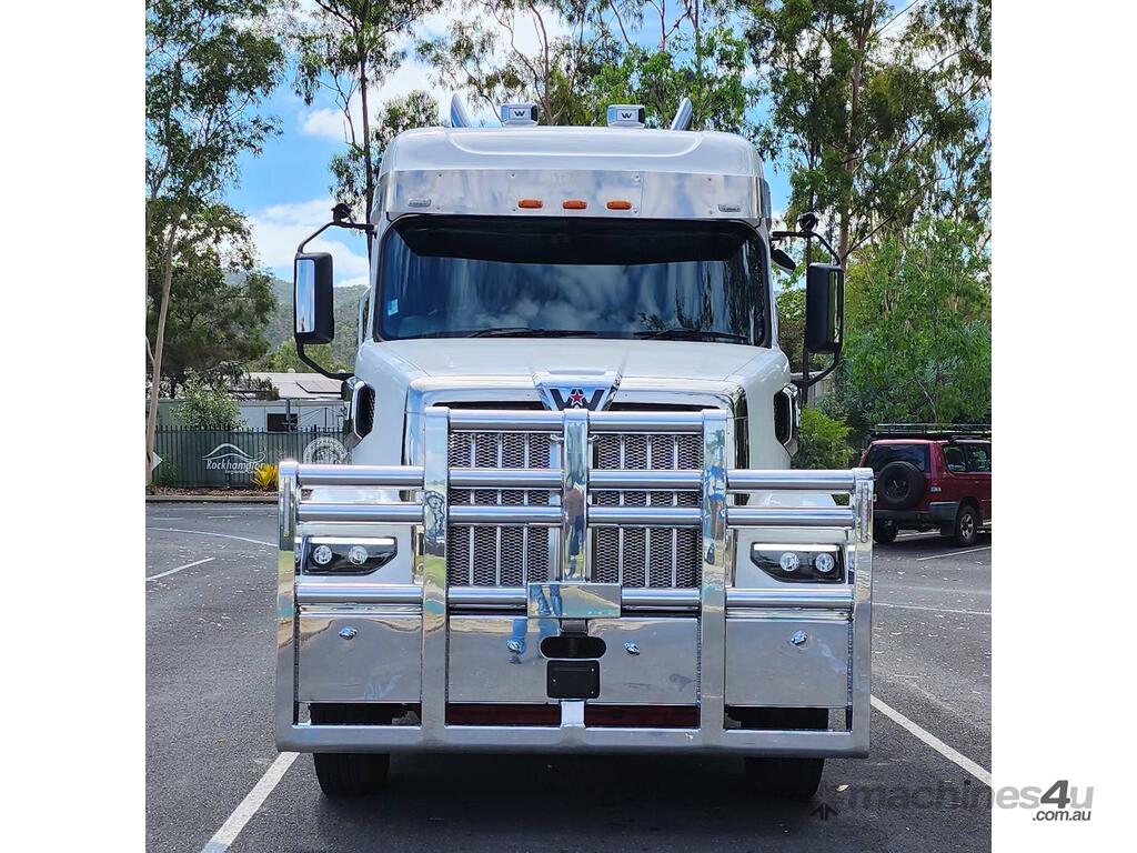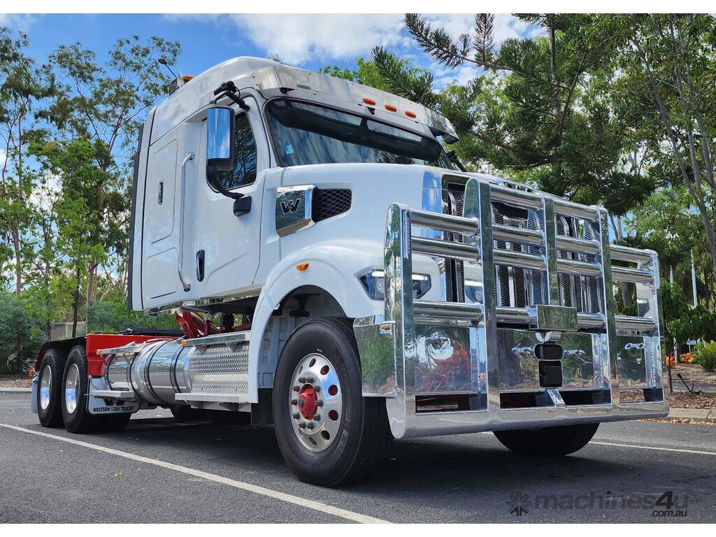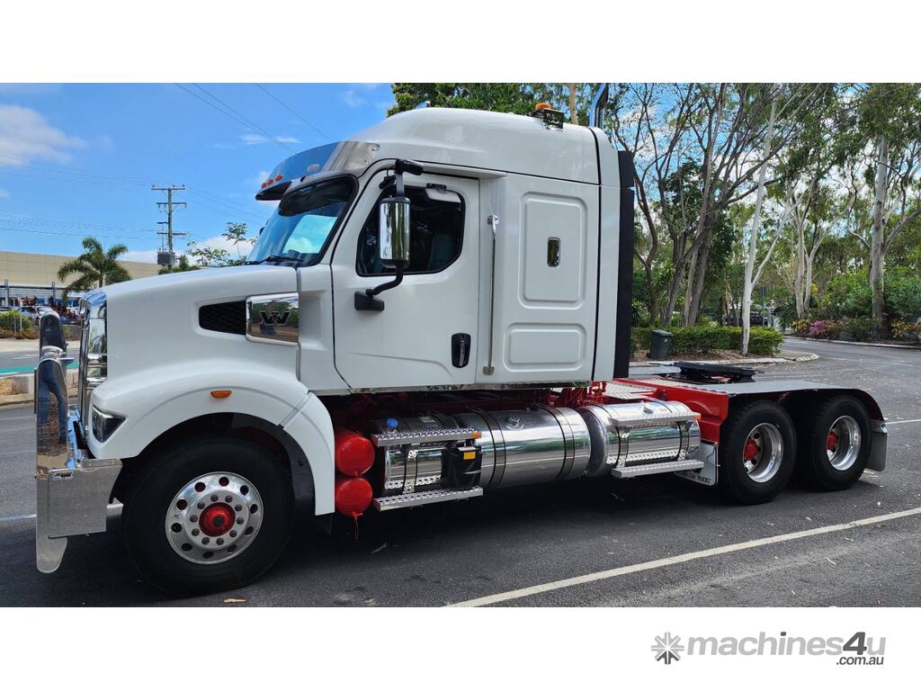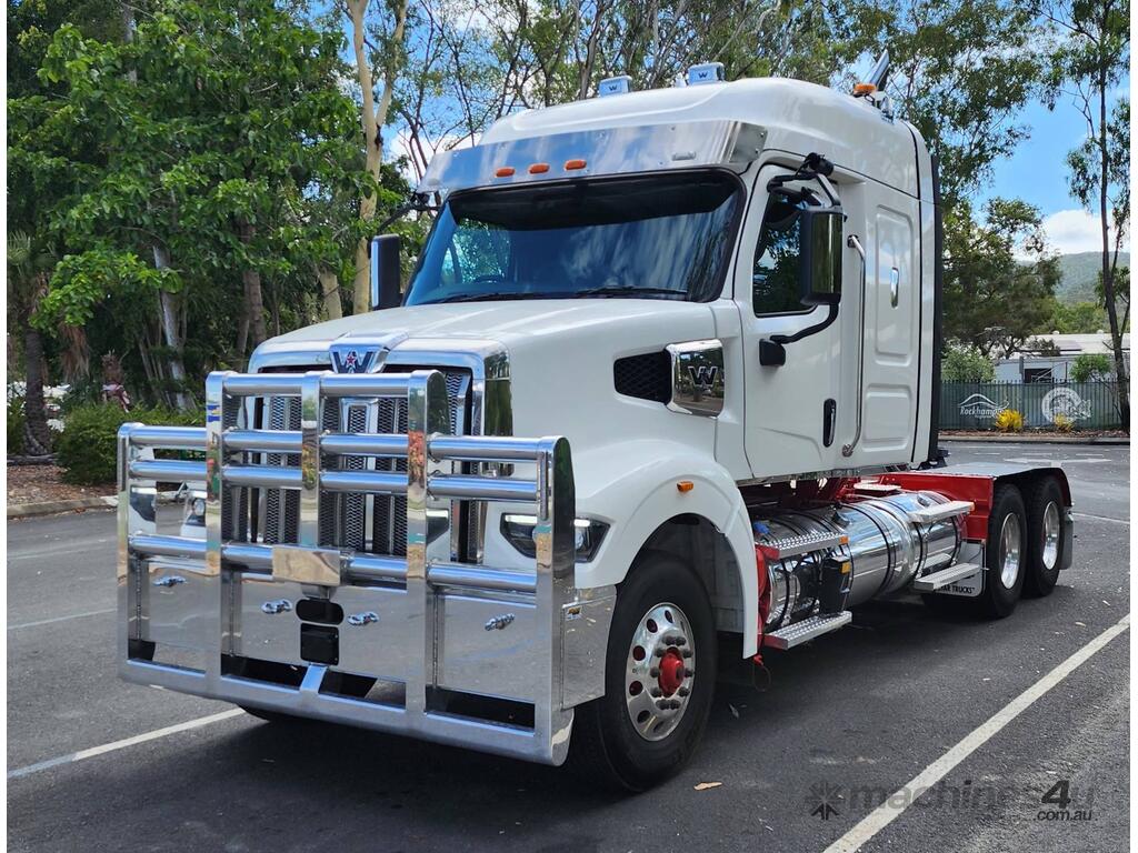 New Western Star 48X IN STOCK Immediate Delivery Fitted With 48” Mid Roof Sleeper cab with New Detroit DD16 600HP with 2,050 ft-lb torque. 18 speed RTLO-22918 manual transmission Meritor RT46-160rear axles with DCDL both axles on Airliner airbag suspension Fitted with 1474L of fuel and 200L add blue tank. Painted White with Red Chassis This unit would suit, tipper, tanker or general freight. This 48X is fitted with a integrated 48”mid roof sleeper Featuring a set forward front axle the 48X is the ideal truck in various applications from tipper and dog to on-highway prime-mover, single trailer and B-double transport to road trains. 48X Western Star safety options, including but not limited to adaptive cruise control, active brake assist, lane departure warning. For more Information, Simon Harris