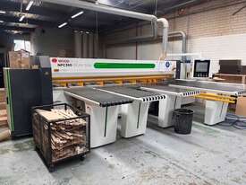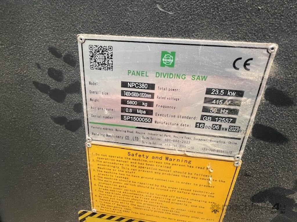Features include on-demand label printing, electronic scoring adjustment, automatic side alignment, automatic lubrication, and a saw carriage optimised to panel width for consistently accurate cuts. The NPC380 is designed for professional woodworking, providing speed, precision, and efficiency.