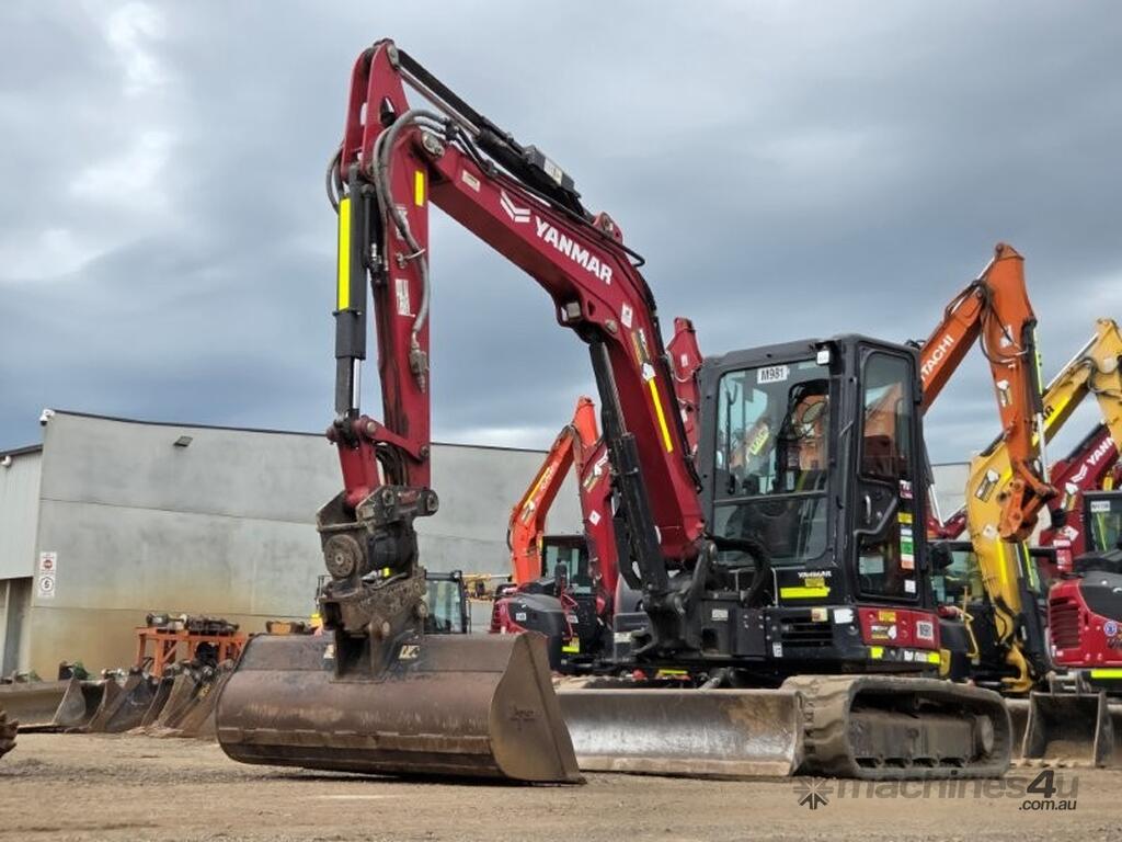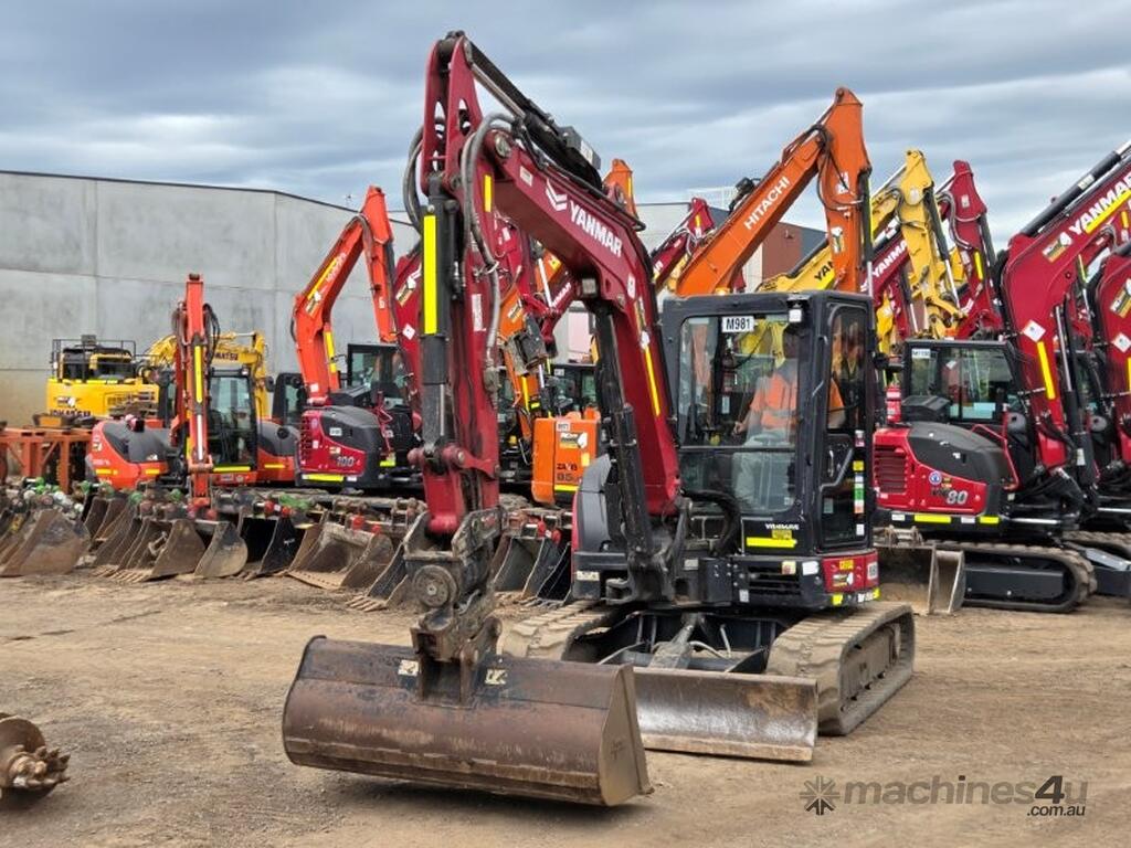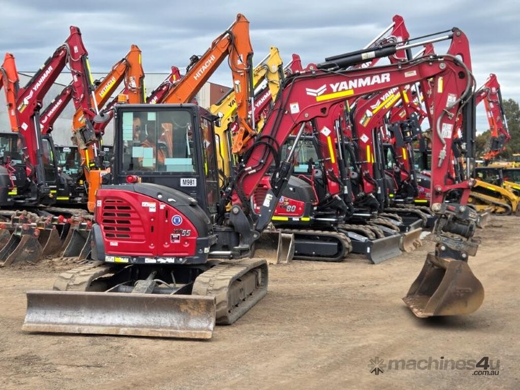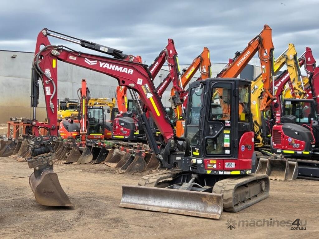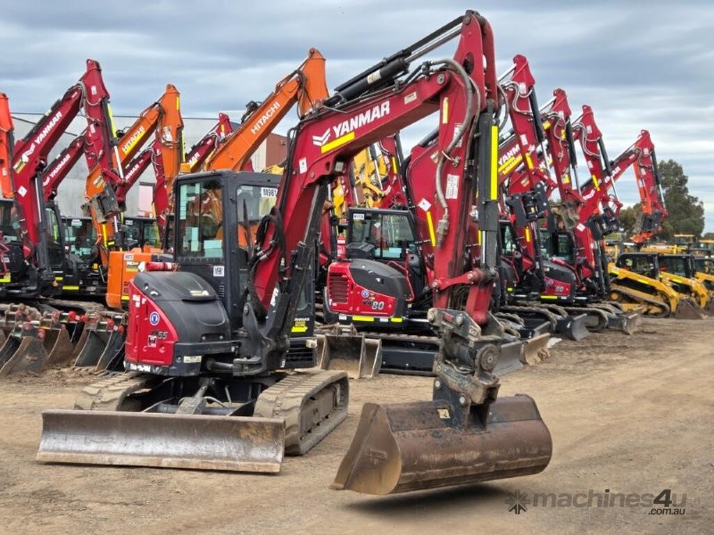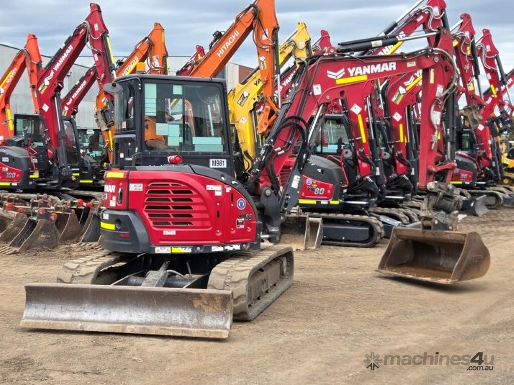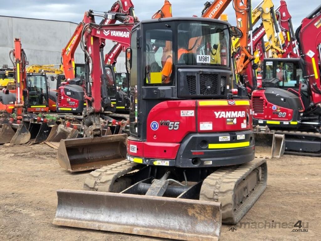 2023 YANMAR VIO55-6 ZERO TAIL 5.6T EXCAVATOR (M981) WITH FULL A/C CABIN, TILTING HYDRAULIC SAFETY HITCH, ROPS, LOW 1385 HRS, AUTO IDLE FUNCTION, 2 SPEED, RUBBER TRACKS, DOZER BLADE, PROPORTIONAL CONTROL AUXILIARY HAMMER AND AUGER PIPING, 300, 450 & 600mm DIGGING BUCKETS, MUD BUCKET, UHF RADIO, FULL CIVIL SPEC AND RISK ASSESSMENT. VERY TIGHT CONDITION AND READY FOR WORK, AUSTRALIAN DELIVERED MARCH 2023, BALANCE OF FACTORY WARRANTY TO 1/03/2027