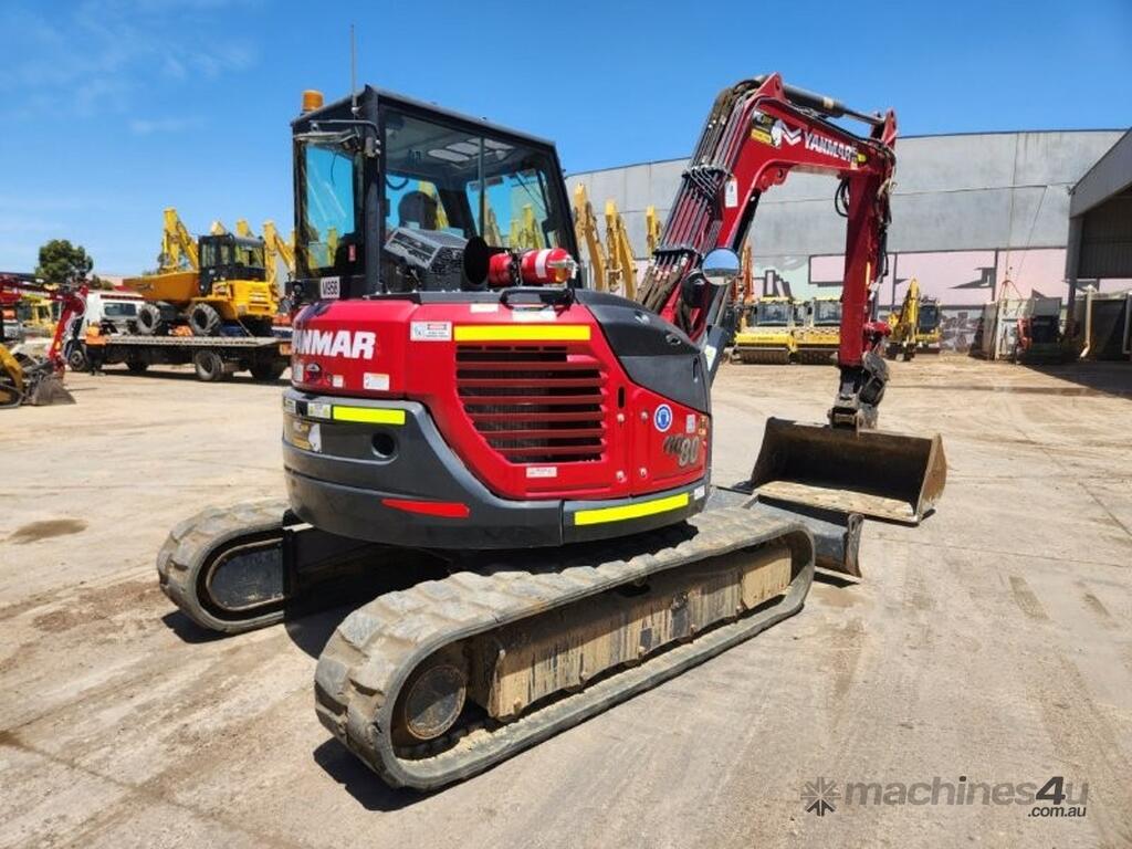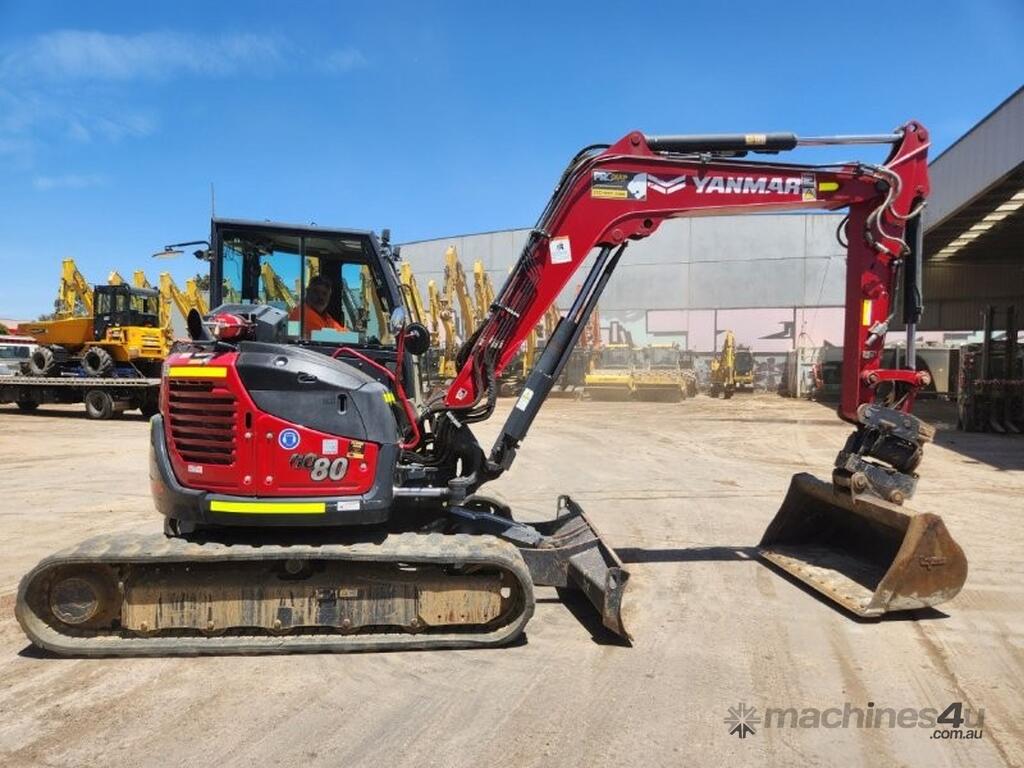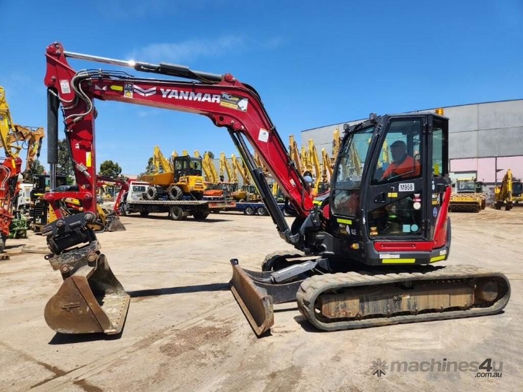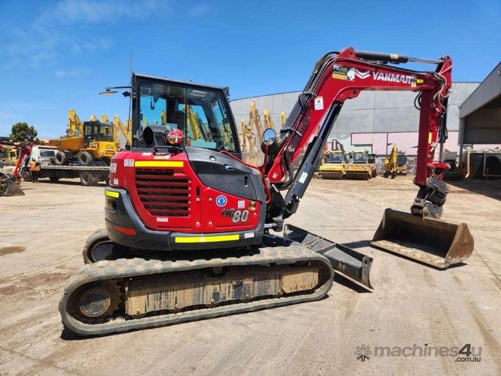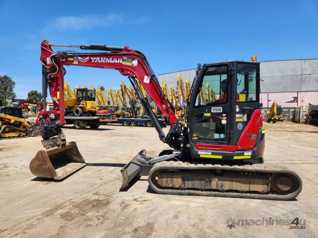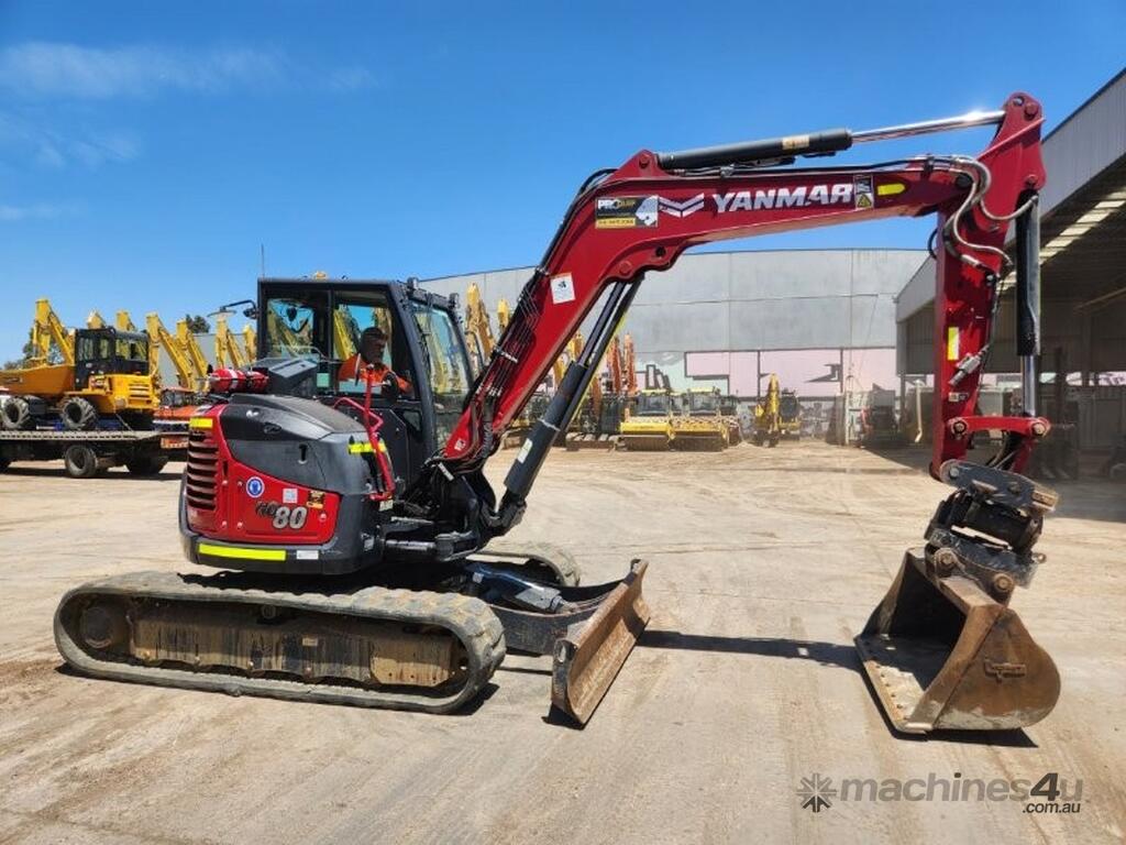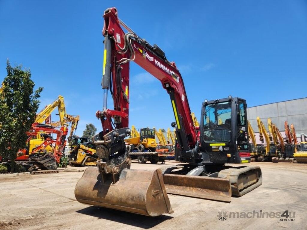 2023 YANMAR VIOT EXCAVATOR WITH SAFETY TILTING HITCH AND 2150 HRS (M958), ONE OWNER, AUSTRALIAN DELIVERED FEBRUARY 2023, 8200KG OPERATING WEIGHT, ZERO TAIL SWING, RUBBER TRACKS, SWIVEL BOOM, FULL A/C CABIN WITH ROPS, DOZER BLADE, AUXILIARY HYDRAULICS WITH PROPORTIONAL CONTROLS, AUTO IDLE FUNCTION, TRAVEL ALARMS, HYDRAULIC TILTING SAFETY QUICK HITCH, HEIGHT AND SLEW CONTROL SYSTEM, 450 & 600mm DIG BUCKETS, MUD BUCKET. RISK ASSESSMENT, UHF RADIO, E-STOPS, ISOLATOR, FULL SERVICE HISTORY, READY TO WORK. BALANCE OF FACTORY WARRANTY APPLIES TO 1/02/2027.