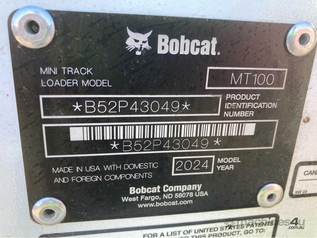 CP: CIRCA 2024,Bobcat,MT100,Stand Behind Mini Loader,3 Cyl,Diesel,Odometer not visible,295 (Hrs. Showing on Hour meter),Colour: White,Unregistered,Serial No: B52P43049,Sold with No Plates,WOVR Status: WOVR N/A,Incident Type: Impact