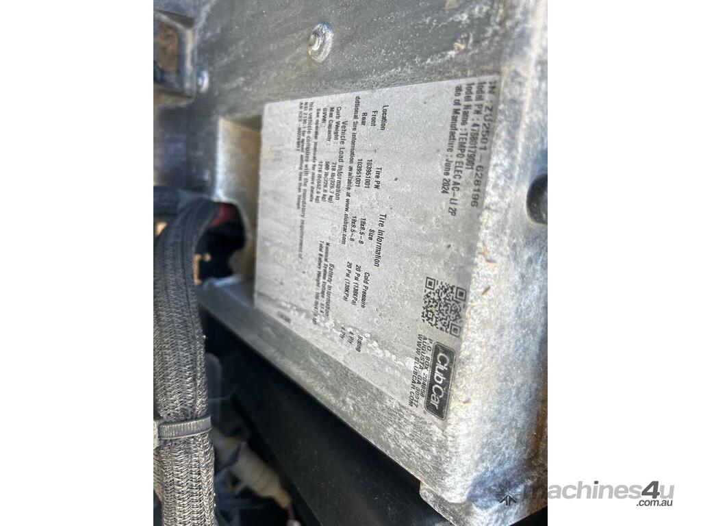 CP: 06/2024,Built: 06/2024,Club Car,Tempo,2 Seat Golf Cart,Battery,Odometer not visible,Hourmeter not visible,Colour: Green,Unregistered,Serial No: ZU,Sold with No Plates