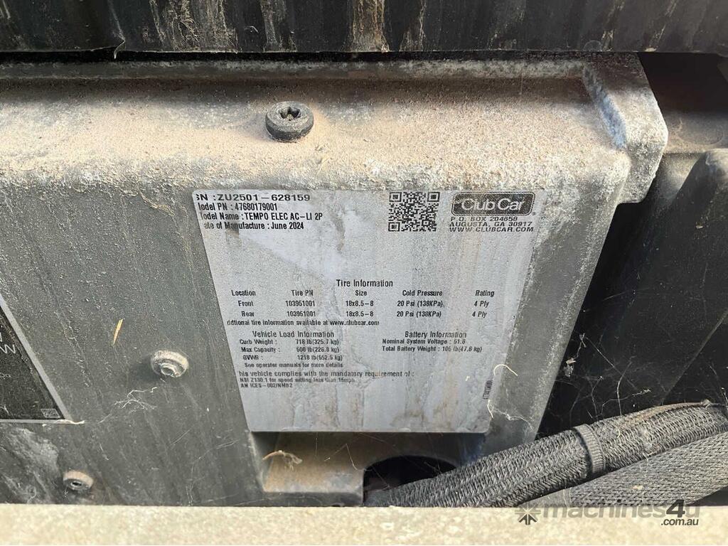 CP: 06/2024,Built: 06/2024,Club Car,Tempo,2 Seat Golf Cart,Battery,Odometer not visible,Hourmeter not visible,Colour: Green,Unregistered,Serial No: ZU,Sold with No Plates