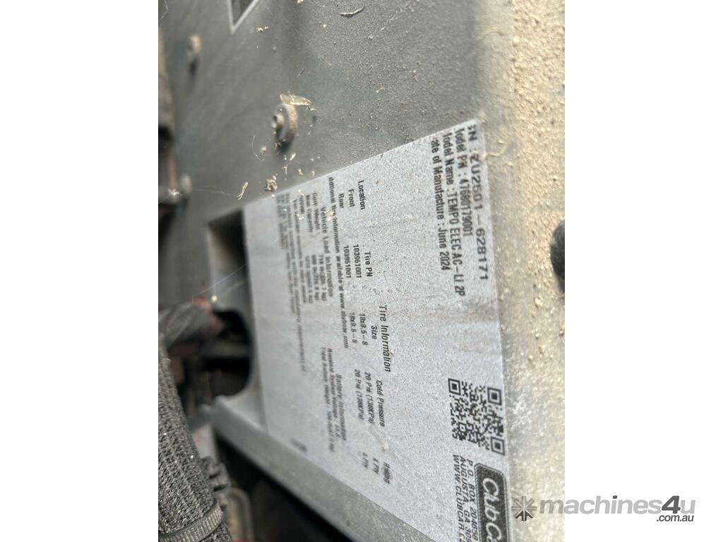 CP: 06/2024,Built: 06/2024,Club Car,Tempo,2 Seat Golf Cart,Battery,Odometer not visible,Hourmeter not visible,Colour: Green,Unregistered,Serial No: ZU,Sold with No Plates