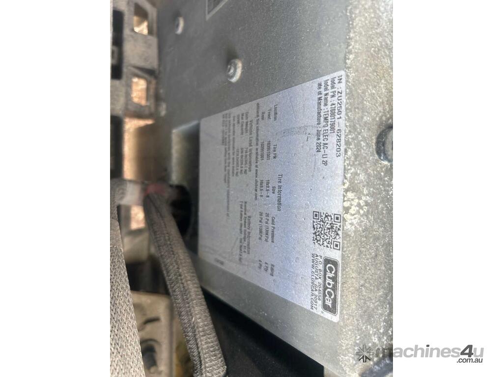 CP: 06/2024,Built: 06/2024,Club Car,Tempo,2 Seat Golf Cart,Battery,Odometer not visible,Hourmeter not visible,Colour: Green,Unregistered,Serial No: ZU,Sold with No Plates