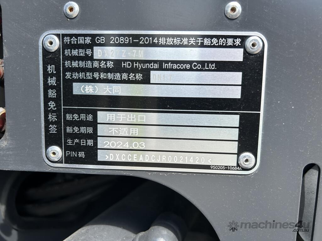 2024 Develon DX27Z-7M Mini Excavator (Unused)