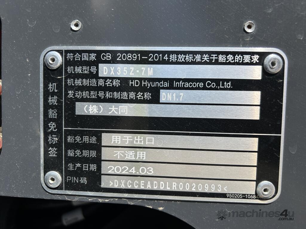 2024 Develon DX35Z-7M Mini Excavator (Unused)