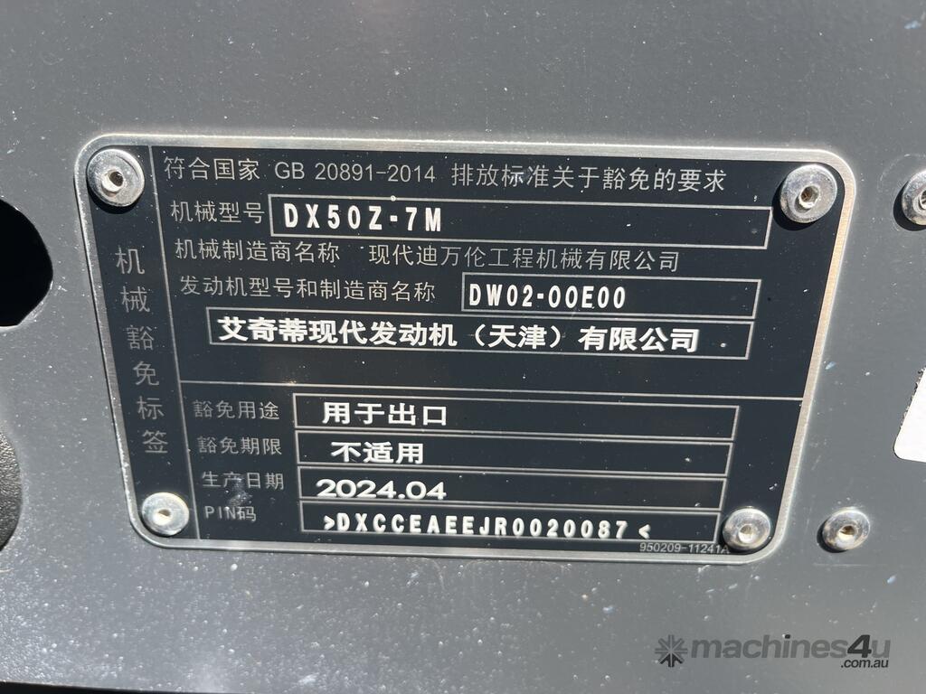 2024 Develon DX50Z-7M Mini Excavator (Unused)