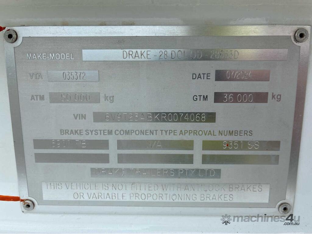 CP: 07/2024,Drake,28 DOL O.D,2 Row of 8 Widening Low Loader Dolly,35201 (Kms. Showing on Hubometer),Unregistered,VIN: 6V9T23ABKR0074068,Sold with No Plates