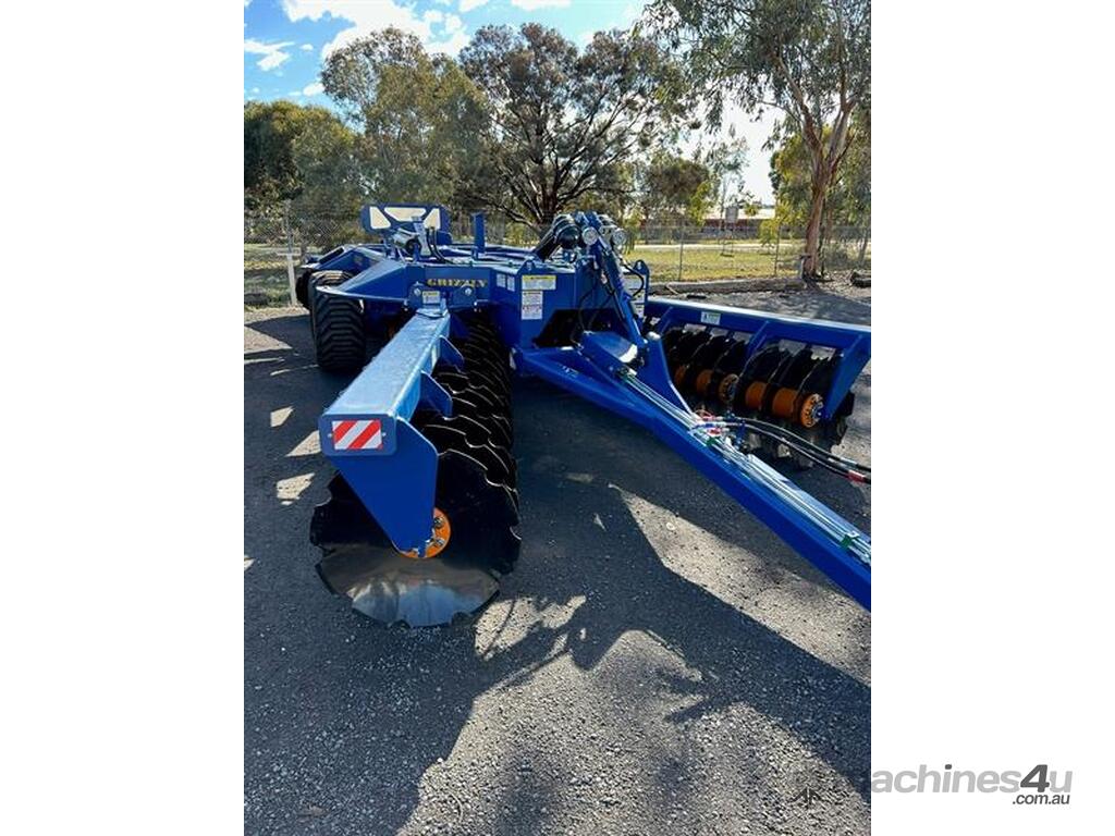 2024 GRIZZLY Tiny 230H-76 Pl Offsets TILLAGE & SEEDING - 2024 year model, brand new, 32" x 10mm front scalloped discs, 32" x 8mm rear scalloped discs, 8.55m cutting width 21 degrees, 9" disc spacing, 6 settings 10/14/18/22/26/30 degrees, 250 x 150 x 9mm RHS WITH 250 x 150 x 16mm RHS on outer beams. Located Moree NSW. Contact Sandy Bailey for more information.