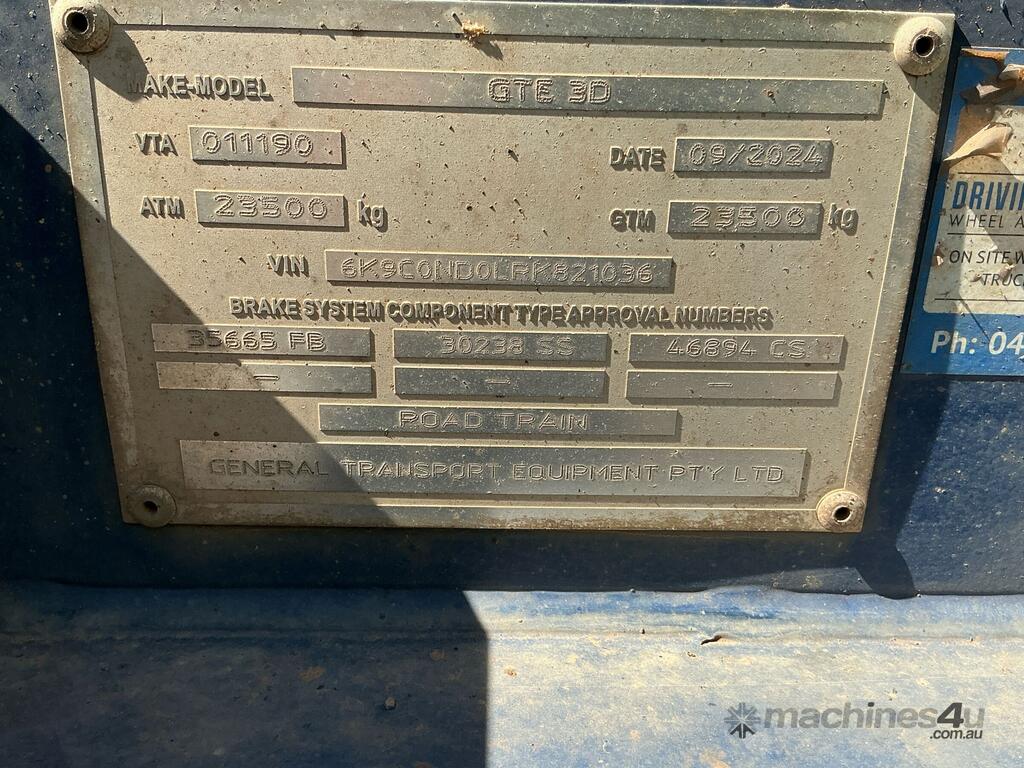 CP: 09/2024,GTE,3-D,Tri Axle Dolly,19592 (Kms. Showing on Hubometer),Colour: Blue,Rego. No: NP(1UAK929), Unregistered WA,VIN: 6K9C0ND0LRK821036,Serial No: 37530,Sold with No Plates,WOVR Status: WOVR N/A,Incident Type: Impact