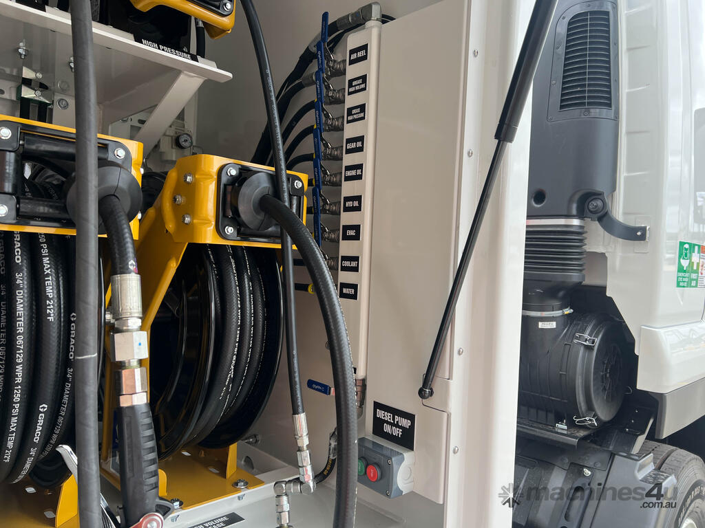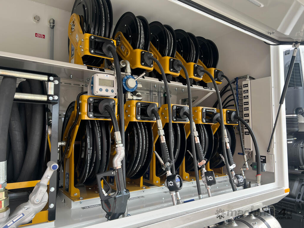 All fill points and easy to view internal site glasses located inside the reel cabinet and Diesel fill site Glasses external