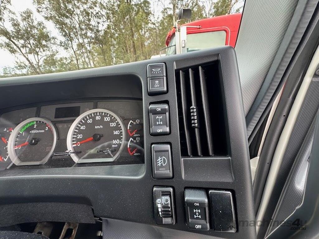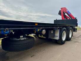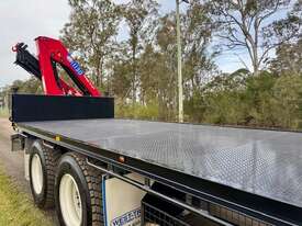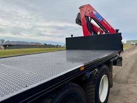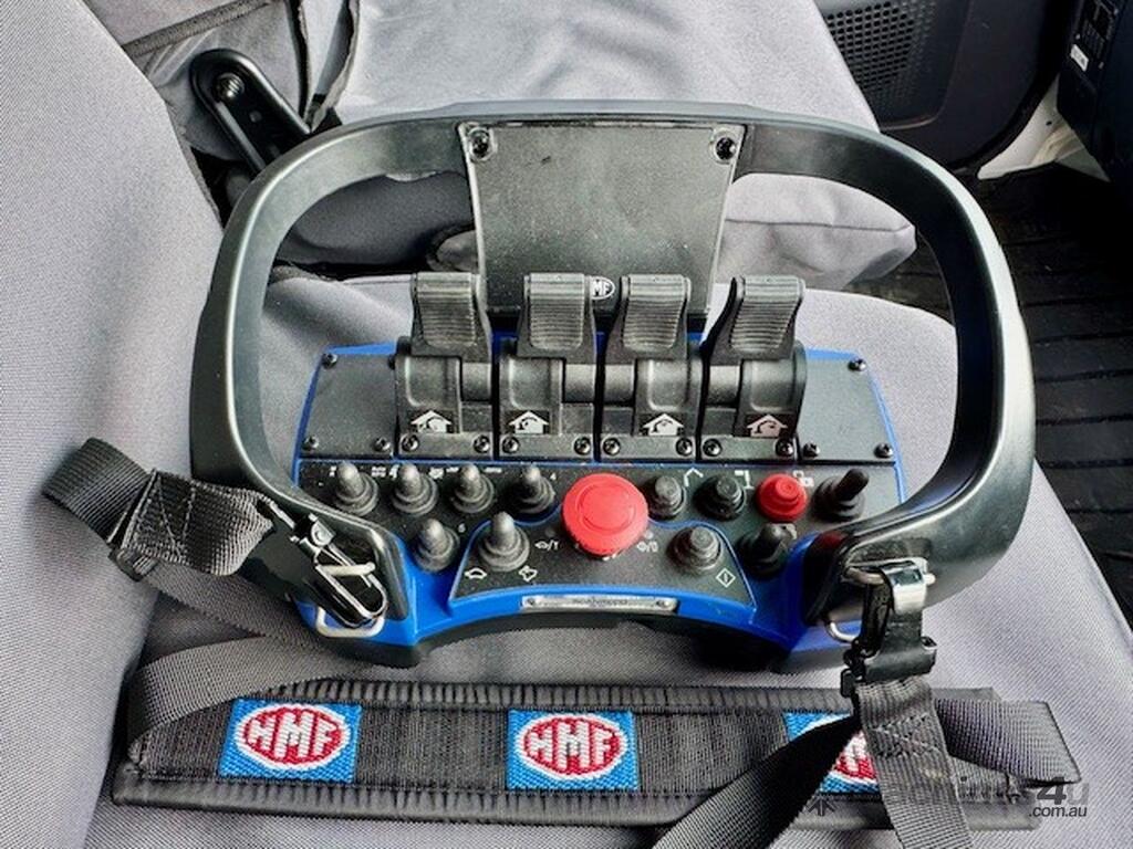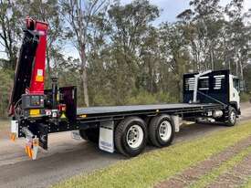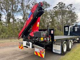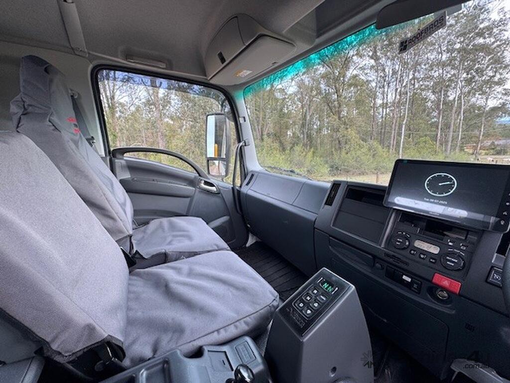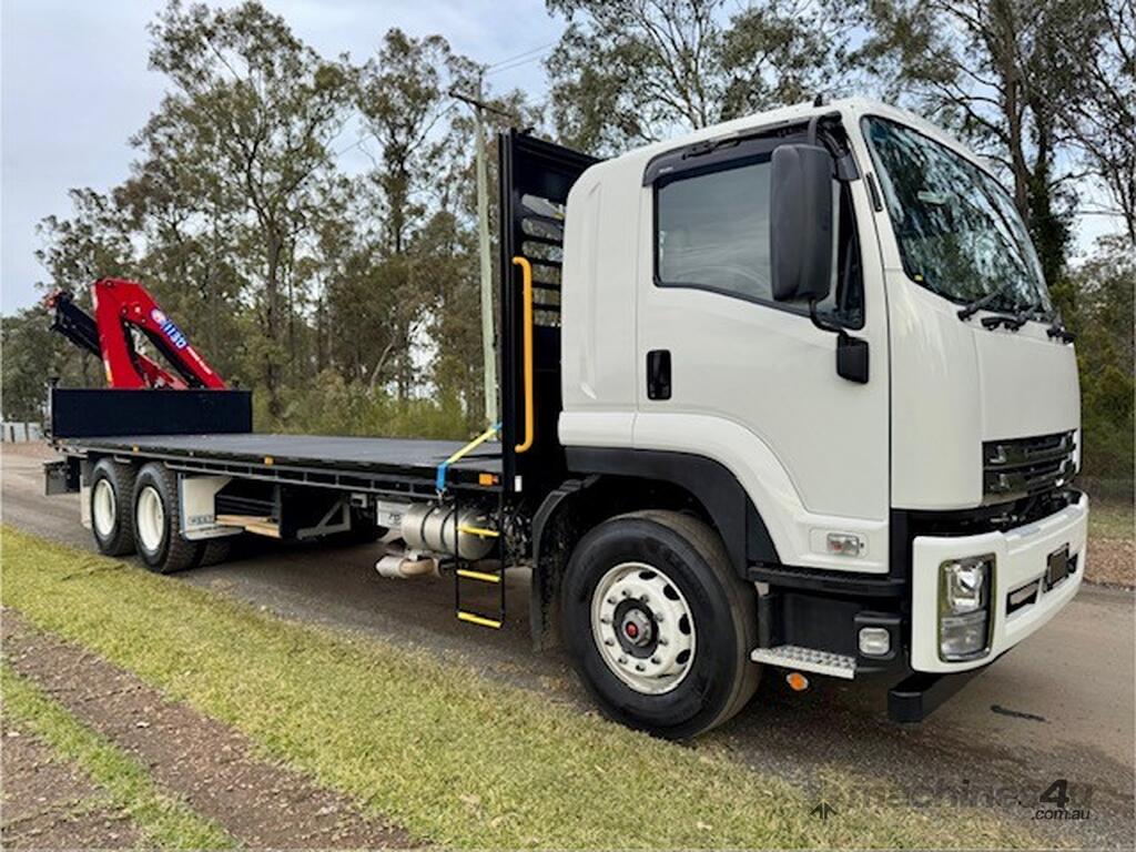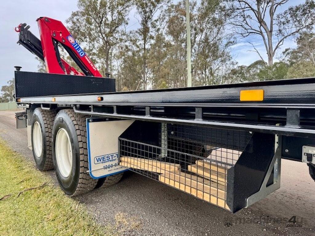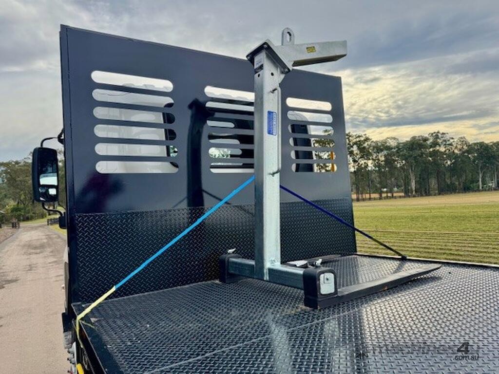 08/2024 Isuzu FVY 240-300 auto LWB, new 8m West-Trans-HMF tray and crane package, HMF 1130-K3 remote controlled crane rated at 9.9TM, tray is fitted with slide-on ratchet strap winches and toolbox, full setup is basically brand new with only 1750kms, warranty till mid-2031, registered until May 2026, comes with 2T rated self levelling pallet hook, selling for $325,000+GST