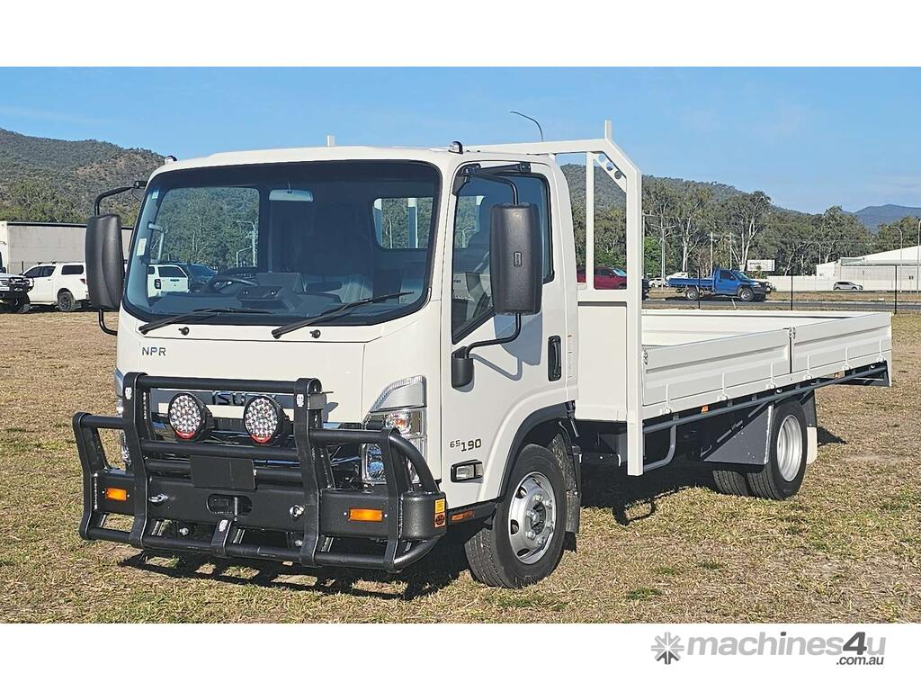 Isuzu NPR 65-190 MWB | Manual | 4.5m Steel Dropsied Tray | TWE Bullbar | Towbar Key Specs: Model: Isuzu NPR 65-190 MWB Transmission: 6-Speed Manual Engine: 4-cylinder turbo diesel GVM: 6,500kg Features & Extras: Heavy-duty 4.5m steel split dropsied tray Ideal for general freight, construction, landscaping & trade use TWE Alloy Bullbar Hammertone powder-coated finish for extra durability and a tough look Genuine Isuzu towbar Ready for towing trailers, machinery or additional freight Medium Wheelbase (MWB) – Great balance of manoeuvrability and payload Dual rear wheels – Improved stability under load Why Buy This Truck? Built tough and ready to work Perfect for tradies, fleet additions or general freight operators Reliable Isuzu performance with robust manual transmission Quality aftermarket upgrades for protection and utility