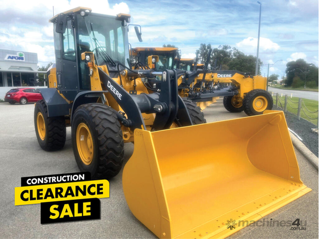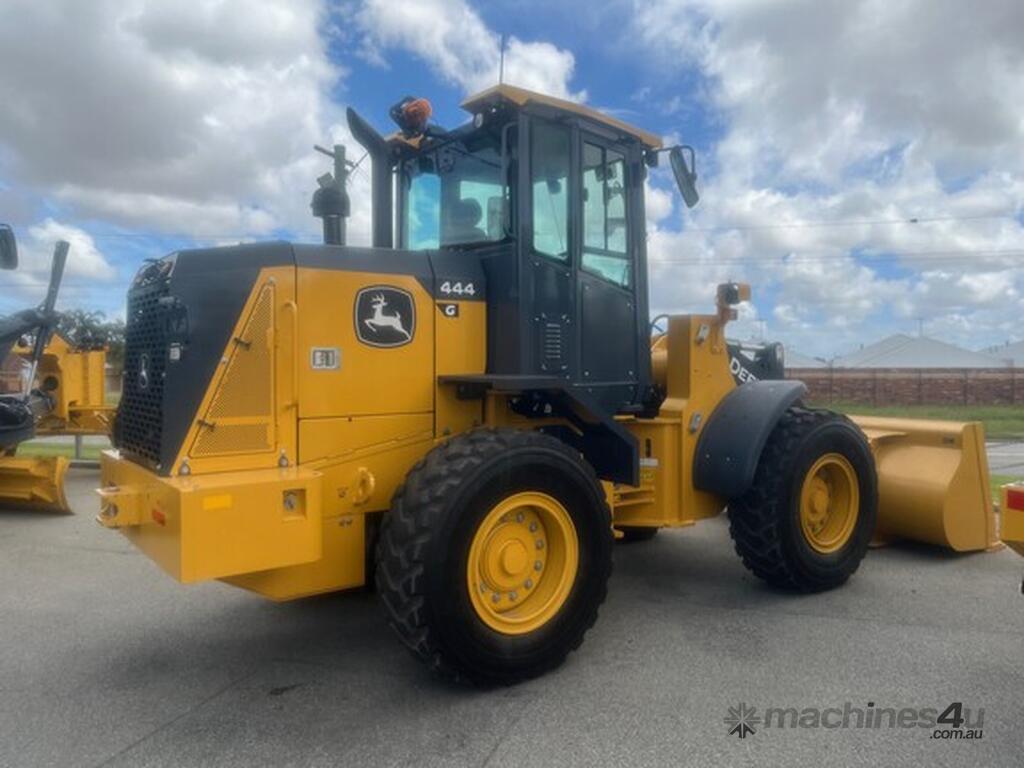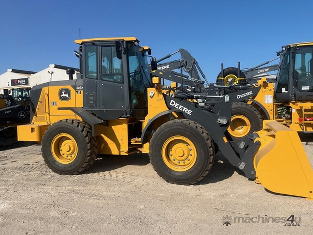 New John Deere 444G Wheel Loader (10T)- ISO / Euro Quick Hitch with 3rd Function & 2.10m3 GP Bucket with BOCE - Powered by Tier 3 John Deere 4.5L Engine (Diesel Only) - Air Ride Seat - AM/FM Radio - Ride Control - Reversing Fan - Engine Pre Cleaner.