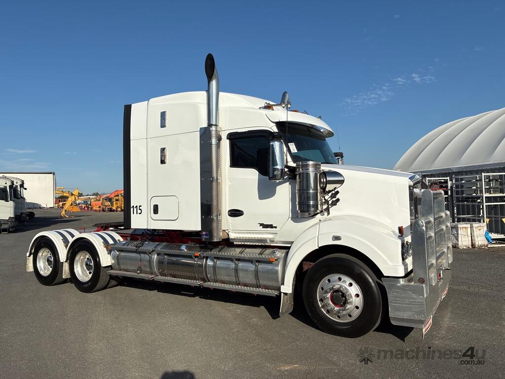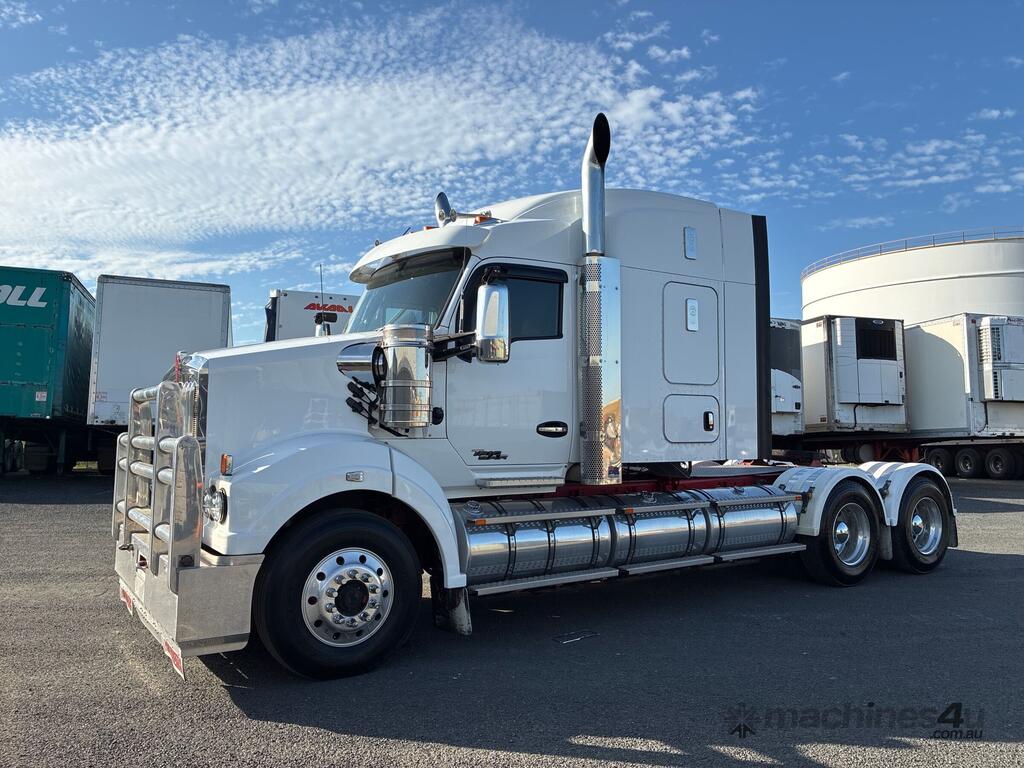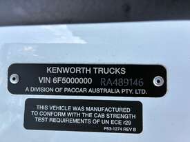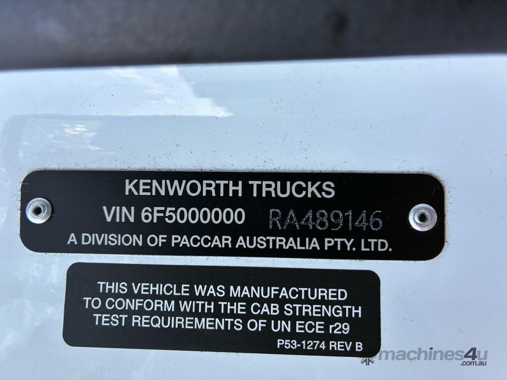 CP: 07/2024,Kenworth,T610SAR,Prime Mover Sleeper Cab,Automatic,Airbag,Cummins X15,6 Cyl,Diesel,277601 (Kms. Showing on Odometer),4110 (Hrs. Showing on Hour meter),Colour: White,Rego. No: NP(XB26QC), Unregistered QLD,VIN: 6F5000000RA489146,Key No: 45,GVM: 27830,GCM: 97000,Sold with No Plates,Key No: 45