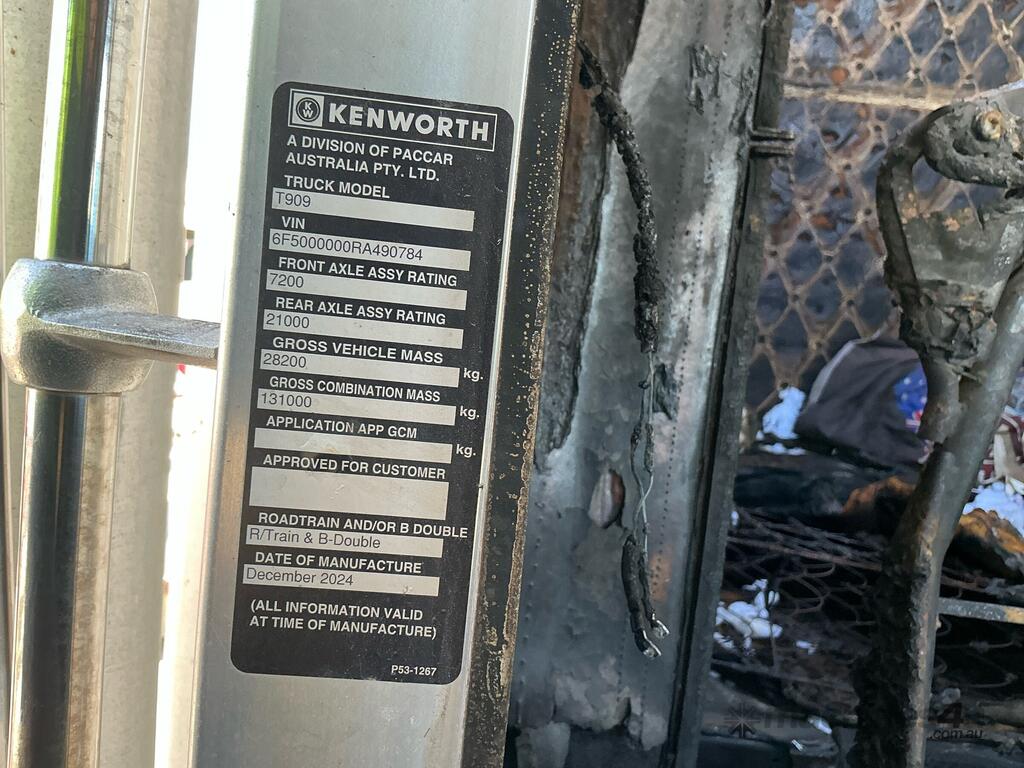 CP: 10/2024,Kenworth,T909,Prime Mover,Automatic,Diesel,Odometer not visible,Hourmeter not visible,Colour: Burnt,Rego. No: NP(SLF909), Unregistered VIC,VIN: 6F5000000RA490784,Length: 27 ft,GVM: 28200,GCM: 131000,Sold with No Plates,WOVR Status: WOVR N/A,Incident Type: Fire