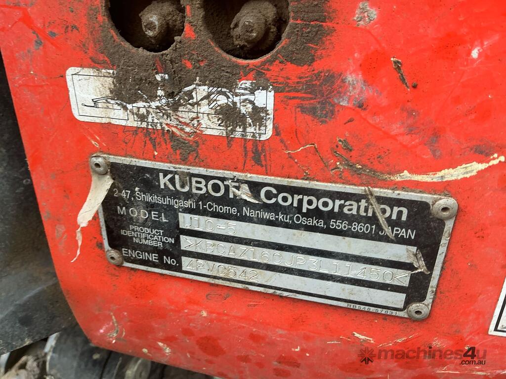 CP: CIRCA 2024,Kubota,U10-5,Mini Excavator,Engine #: 4PVC542,Diesel,Odometer not visible,604 (Hrs. Showing on Hour meter),Colour: Orange,Unregistered,VIN: KBCAZ16CJP3L11450,Sold with No Plates