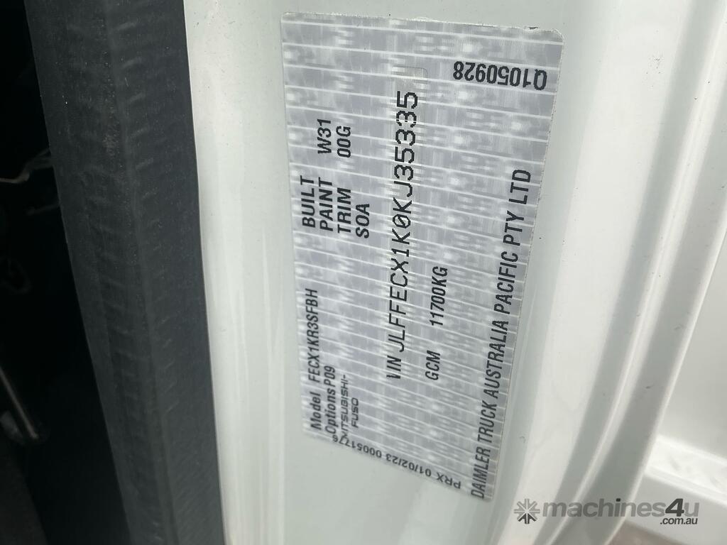 CP: CIRCA 2024,Mitsubishi Fuso,Canter 918,Tray Day Cab,Automatic,Leaf Spring Susoension,4 Cyl,Diesel,2796 (Kms. Showing on Odometer),Hourmeter not visible,Colour: White,Rego. No: NP(XW50QY), Unregistered,VIN: JLFFECX1K0KJ35335,Key No: 264,GCM: 11700,Sold with No Plates,Key No: 264