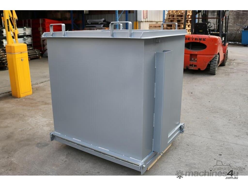 Rubbish bin with drop bottom suitable for lifting with forklift or crane