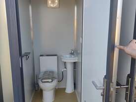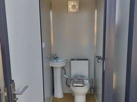 Brand new Block with two Toilets, Vanity, Cold Water Inlets, Drain outlets, 240volt outlets, Exhaust Fan, Modern design, W1.28 x L2.05 x H2.4m.