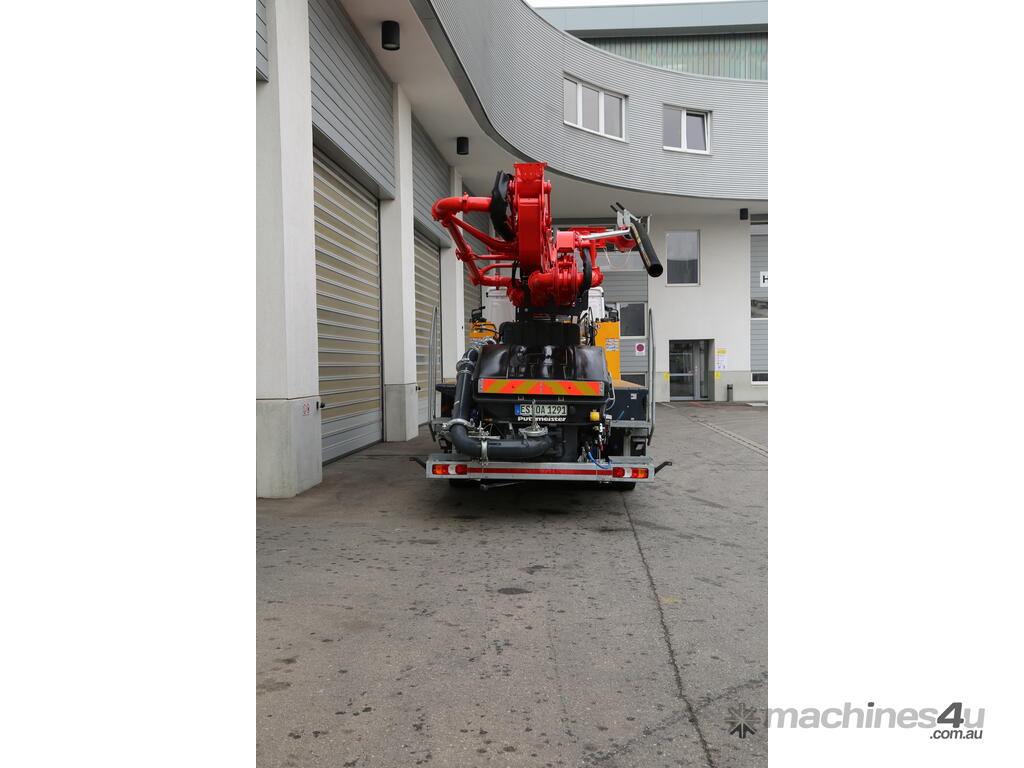 The Putzmeister BSF 24-4 is one of the most versatile units available. The Boom has extremely low unfolding and operating heights and combined with a very small outrigger footprint it can be used in endless applications. Supplied with a high pressure pump kit and back end it doubles as a high pressure/ plug in pump when needed. Mounted on a new Volvo FM 11 (450Hp) with heavy duty suspension the truck can be moved into position with the boom unfolded over the cabin.