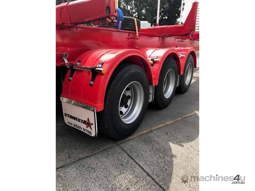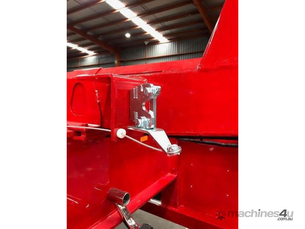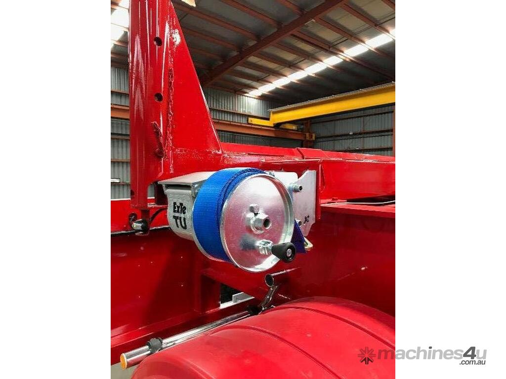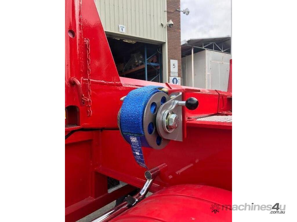 For secure loading and unloading, air-operated and manual load binders are available at an extra cost, along with remote release kits for added convenience. The trailers ride on 11 R tires with 10 stud 285 steel wheels, with the option to upgrade to alloy wheels. Plastic mudguards with ribbed back mudflaps provide additional protection. All our trailers are designed in-house in Australia and feature an ADR-approved Australian brake system, ensuring compliance with local safety standards. The two-pack paint finish not only offers durability but also enhances the appearance of the trailer.