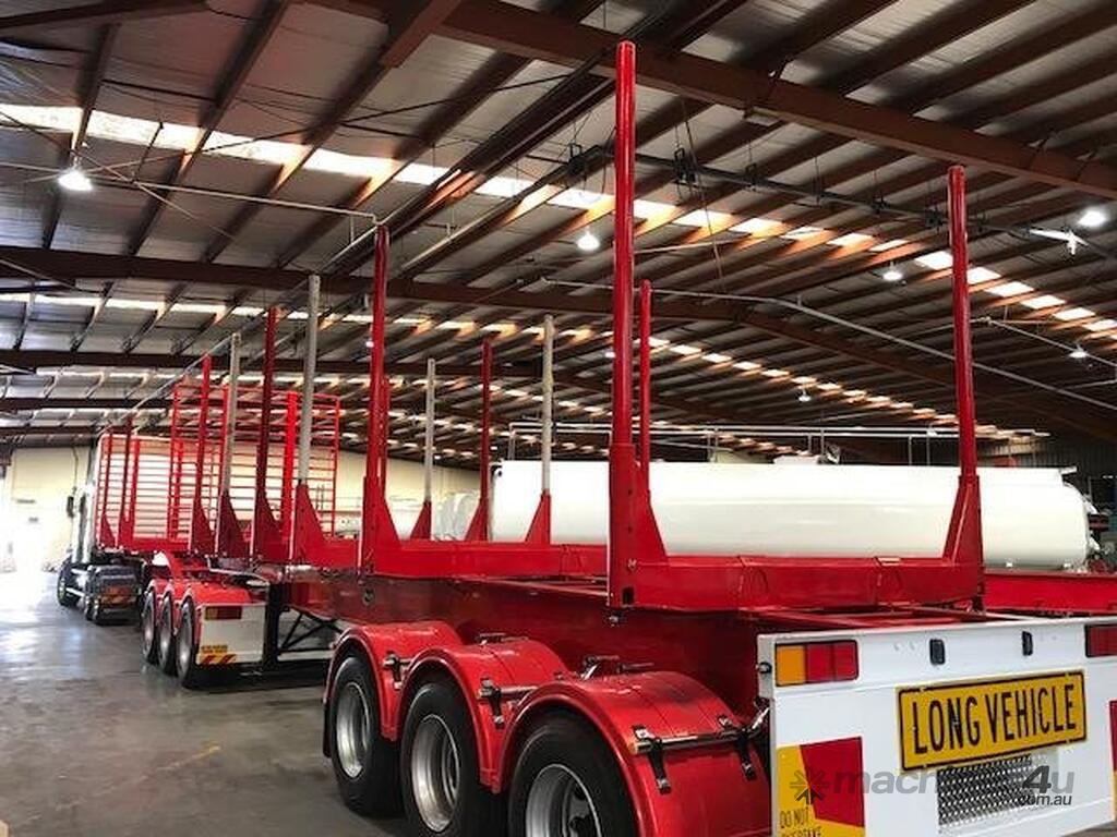 Introducing the brand new Stonestar Log Trailers, expertly designed for the efficient and secure transport of logs. These 40ft tri-axle trailers are built with heavy-duty components to withstand the demands of the logging industry. Featuring 10 stud K-Hitch axles and K-Hitch air bag suspension, they provide a stable and reliable ride, even under heavy loads. The trailers come equipped with heavy-duty bolsters, which are movable to accommodate various log sizes and configurations. A sturdy headboard is included for added safety.