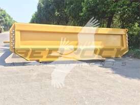 Complete tailgate assembly, with mounting kits, for Cat 745C Trucks, These are the Factory chain lift style tailgates, Comes with Bracket hinges for Truck frame, the Chains, the brackets that hold gate to truck body, and Tailgate Complete with arms. It is the entire kit, everything you need.