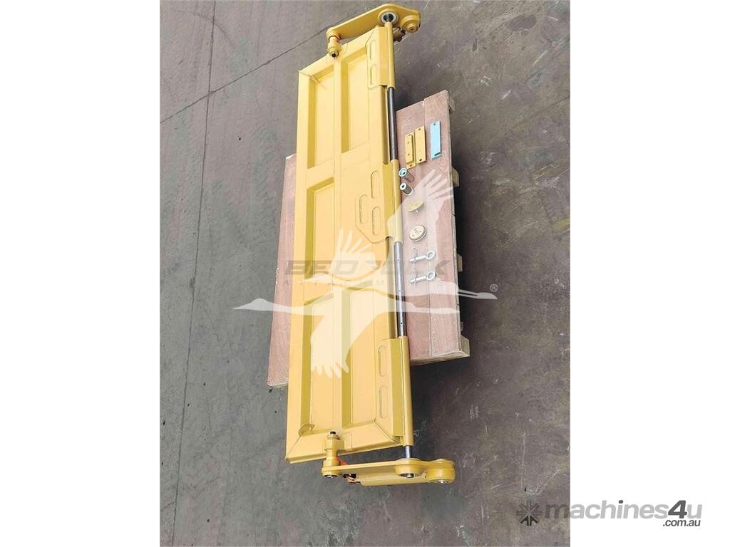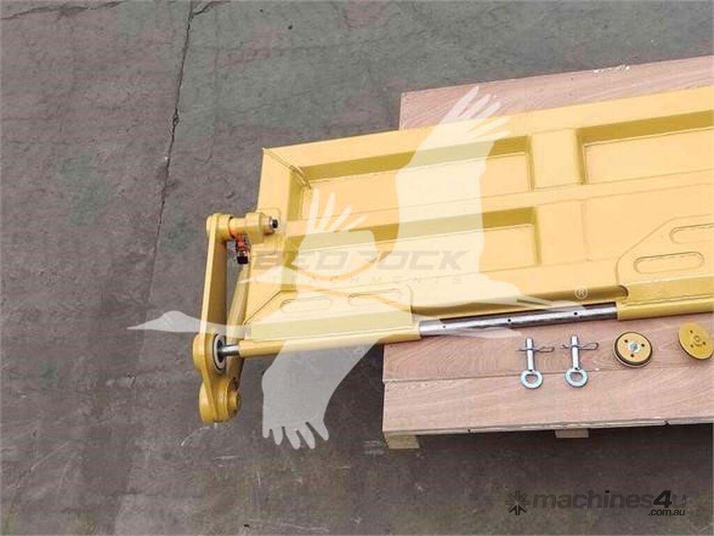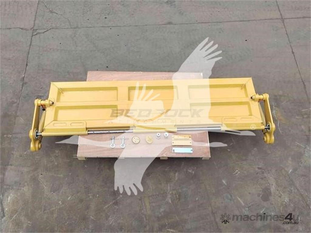Complete tailgate assembly, with mounting kits, for Cat 740 BCE Trucks. These are the Factory chain lift style tailgates. Comes with Bracket hinges for Truck frame, the chains, the brackets that hold gate to truck body, and Tailgate Complete with arms. It is the entire kit, everything you need.