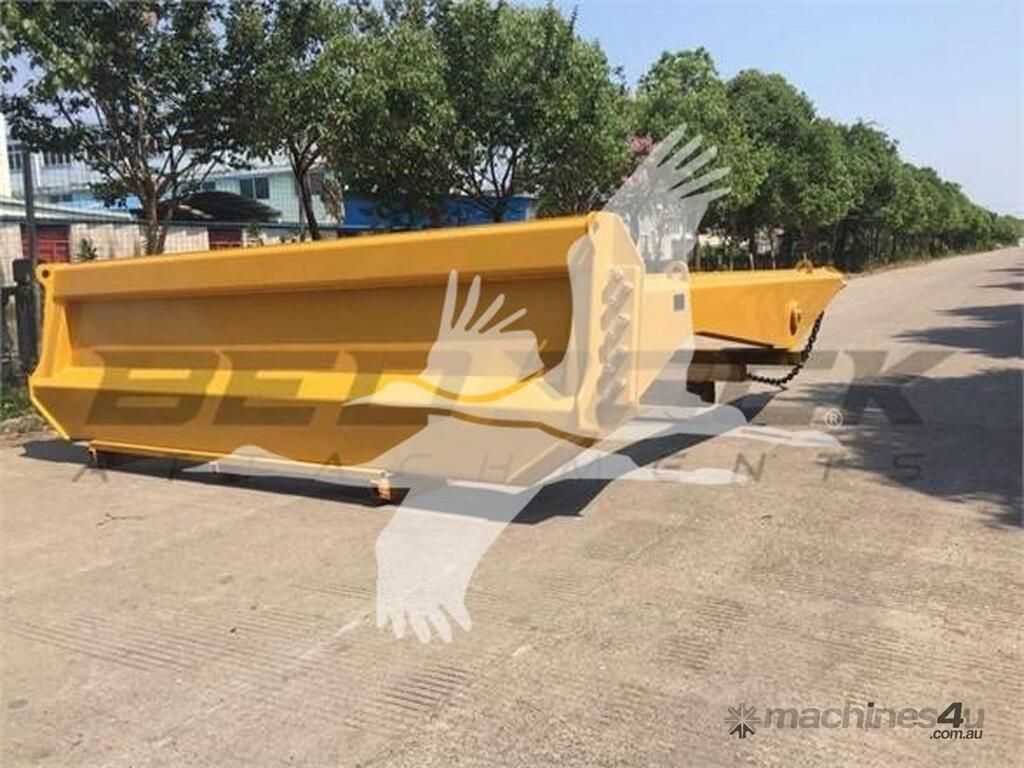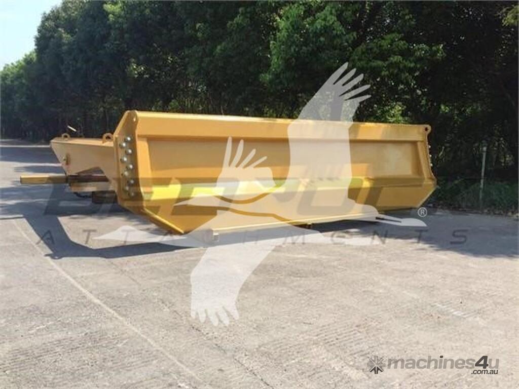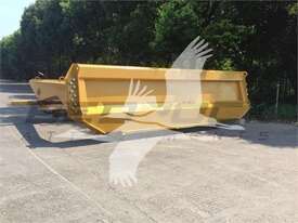 Complete tailgate assembly, with mounting kits, for Cat 745C Trucks, These are the Factory chain lift style tailgates, Comes with Bracket hinges for Truck frame, the Chains, the brackets that hold gate to truck body, and Tailgate Complete with arms. It is the entire kit, everything you need.