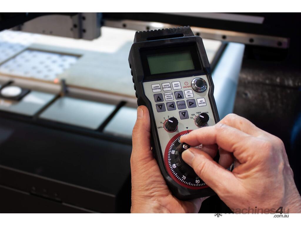 Material Hold-down: Matrix Vacuum Table Bed supported by 4x high-volume vacuum pumps, with reverse pump function for floating material on bed.