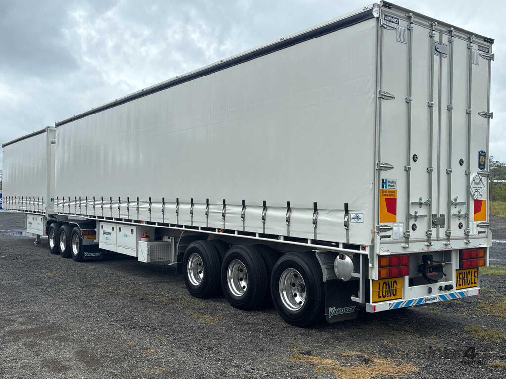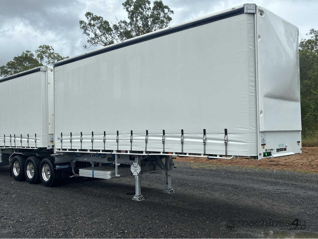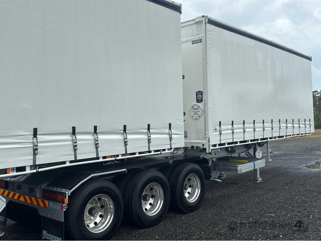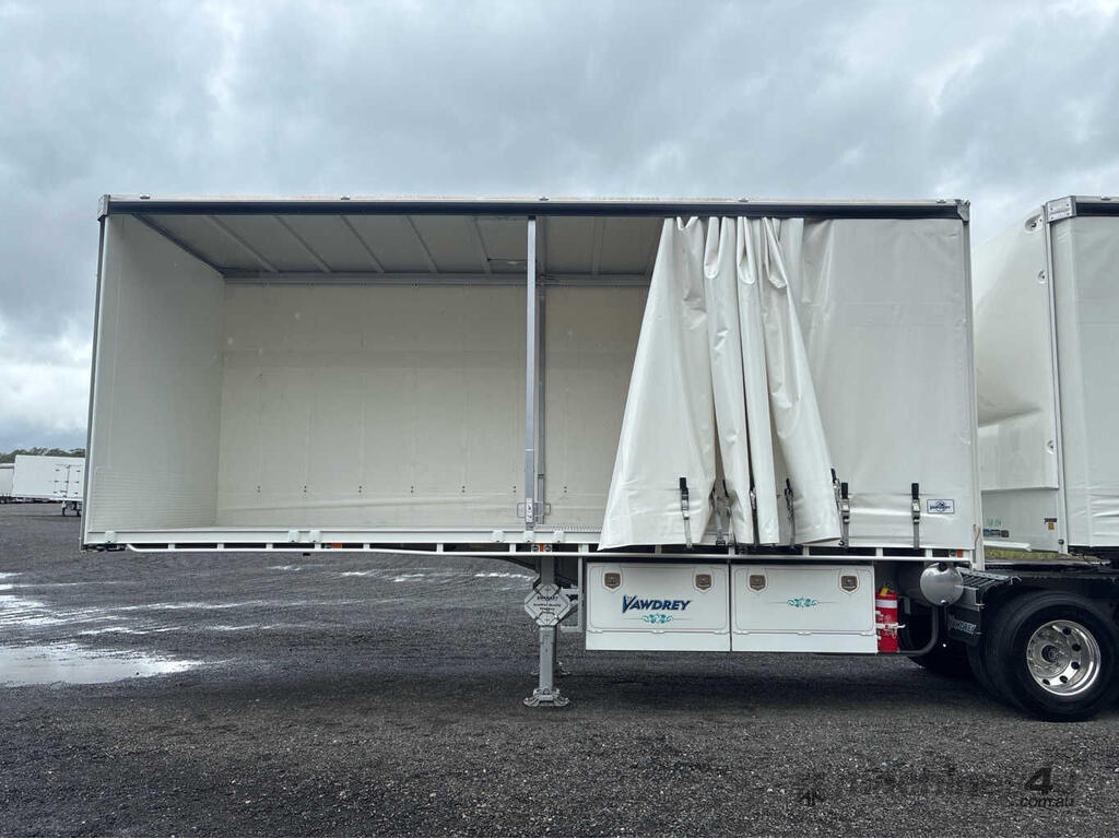 CP: 03/2024,Vawdrey,VB S3,Tri Axle Flat Top Curtainsider Combination,1803 (Kms. Showing on Hubometer),Colour: White,Unregistered,VIN: 6HJVAWAUS0SE44431,Sold with No Plates