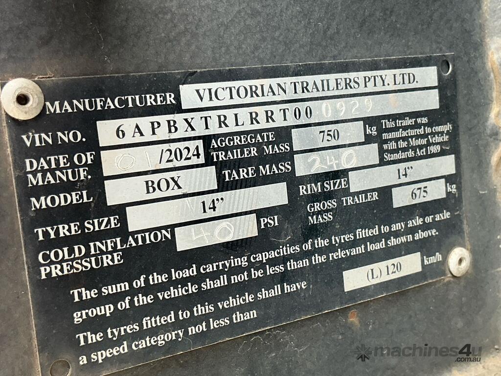 CP: 01/2024,Built: 01/2024,Victorian Trailers,BOX,6x4 Box Trailer,0 (undefined),Colour: Black,Rego. No: NP(56646B), Unregistered VIC,VIN: 6APBXTRLRRT000929,Sold with No Plates,WOVR Status: WOVR N/A,Incident Type: Impact
